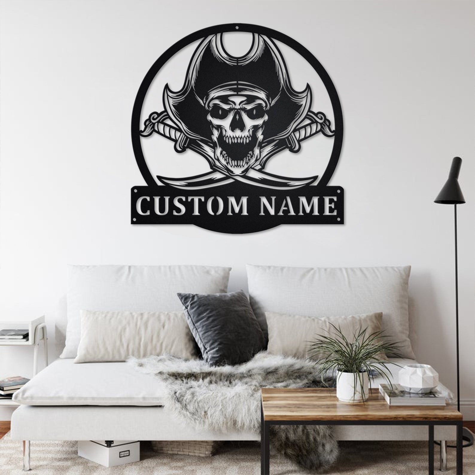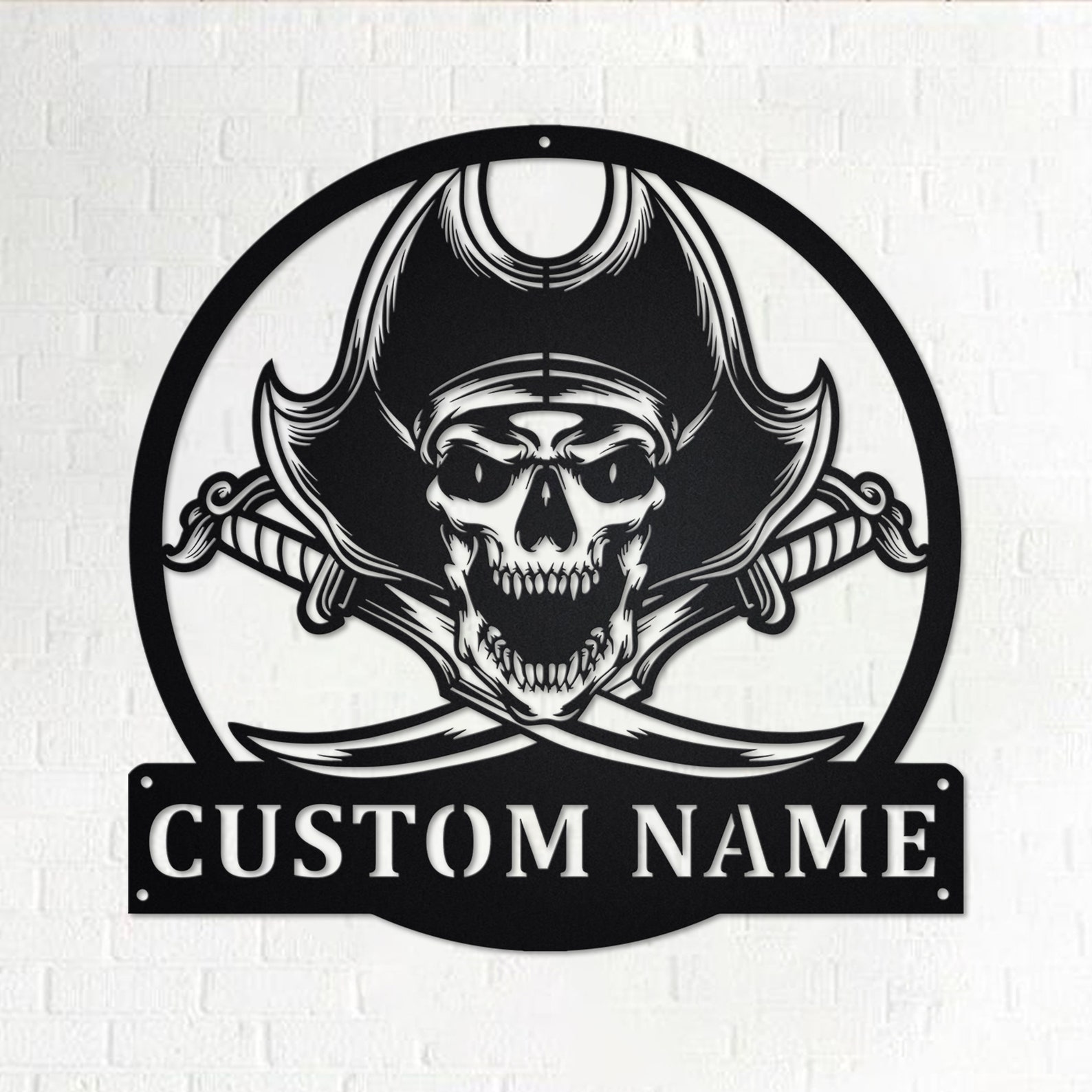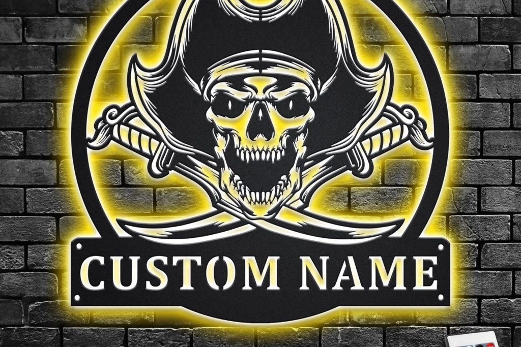 Custom Pirate Skull Metal Sign with LED V2 – Ship Decor