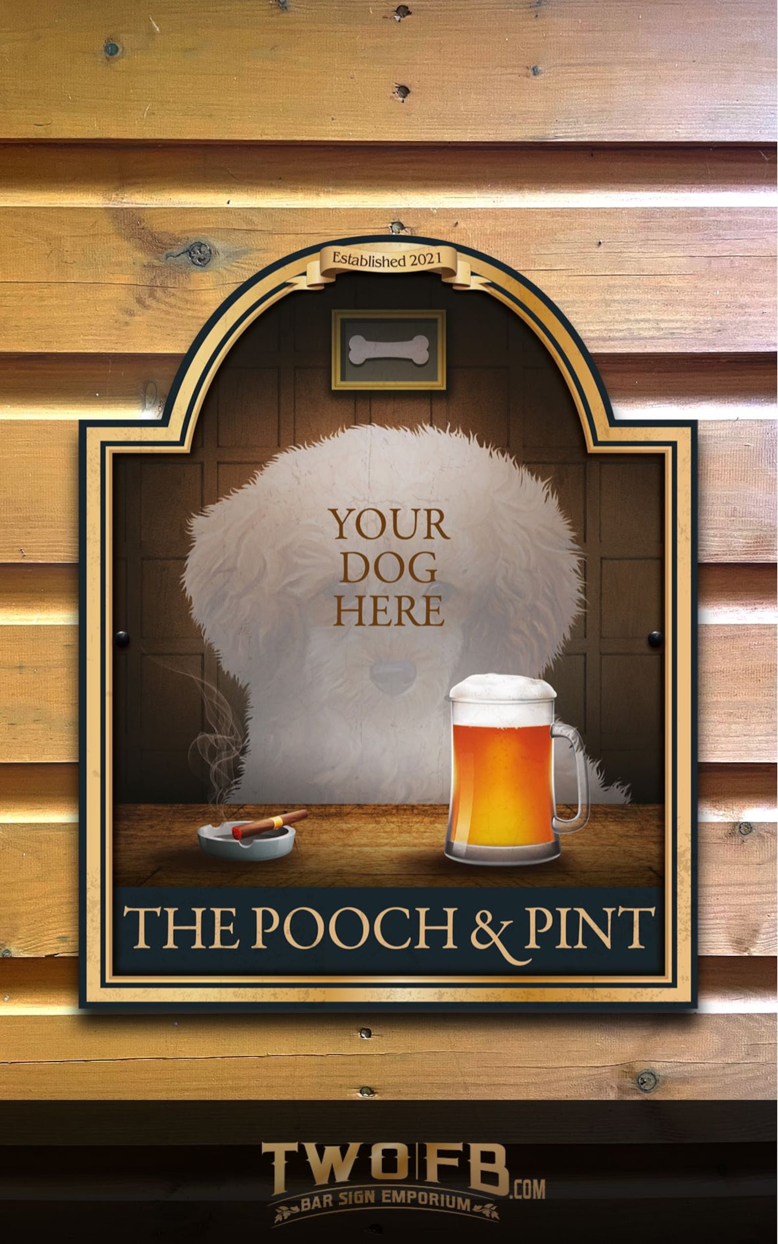 Simple add your dog to one of our bar sign "Dog in a bar signs" with your bar name.