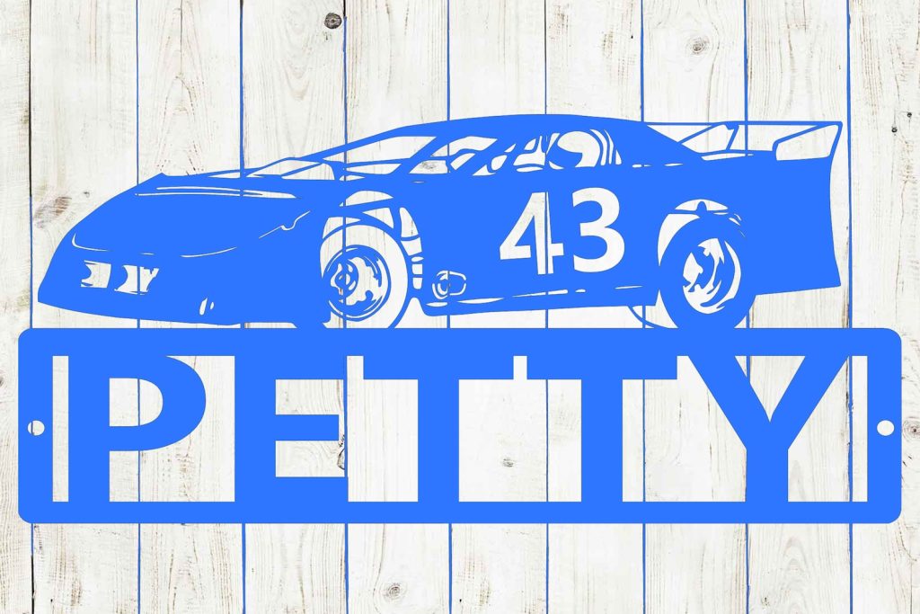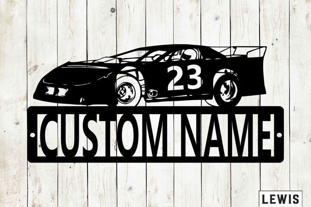 Custom Name and Number Dirt Track Race Car Metal Sign