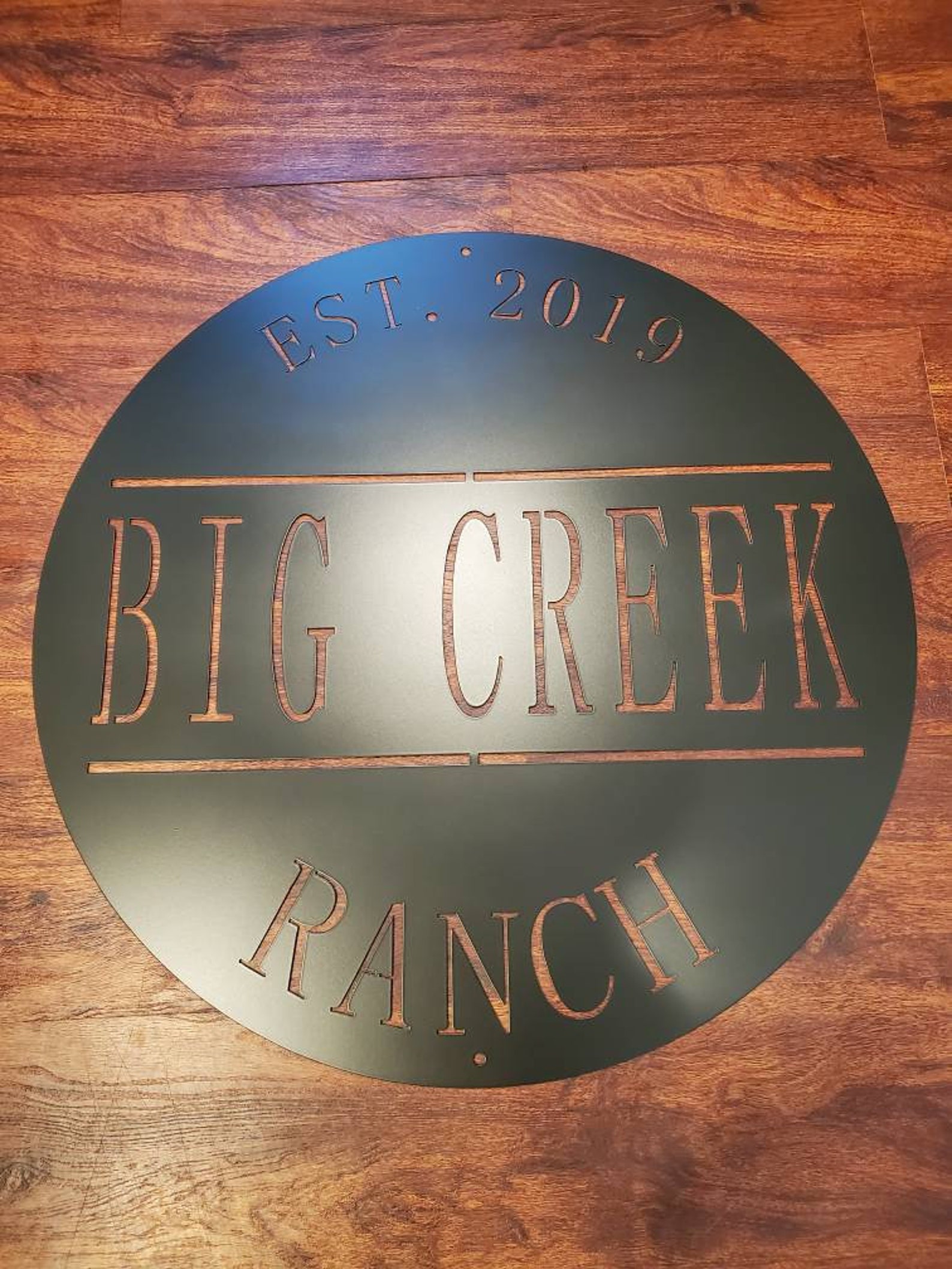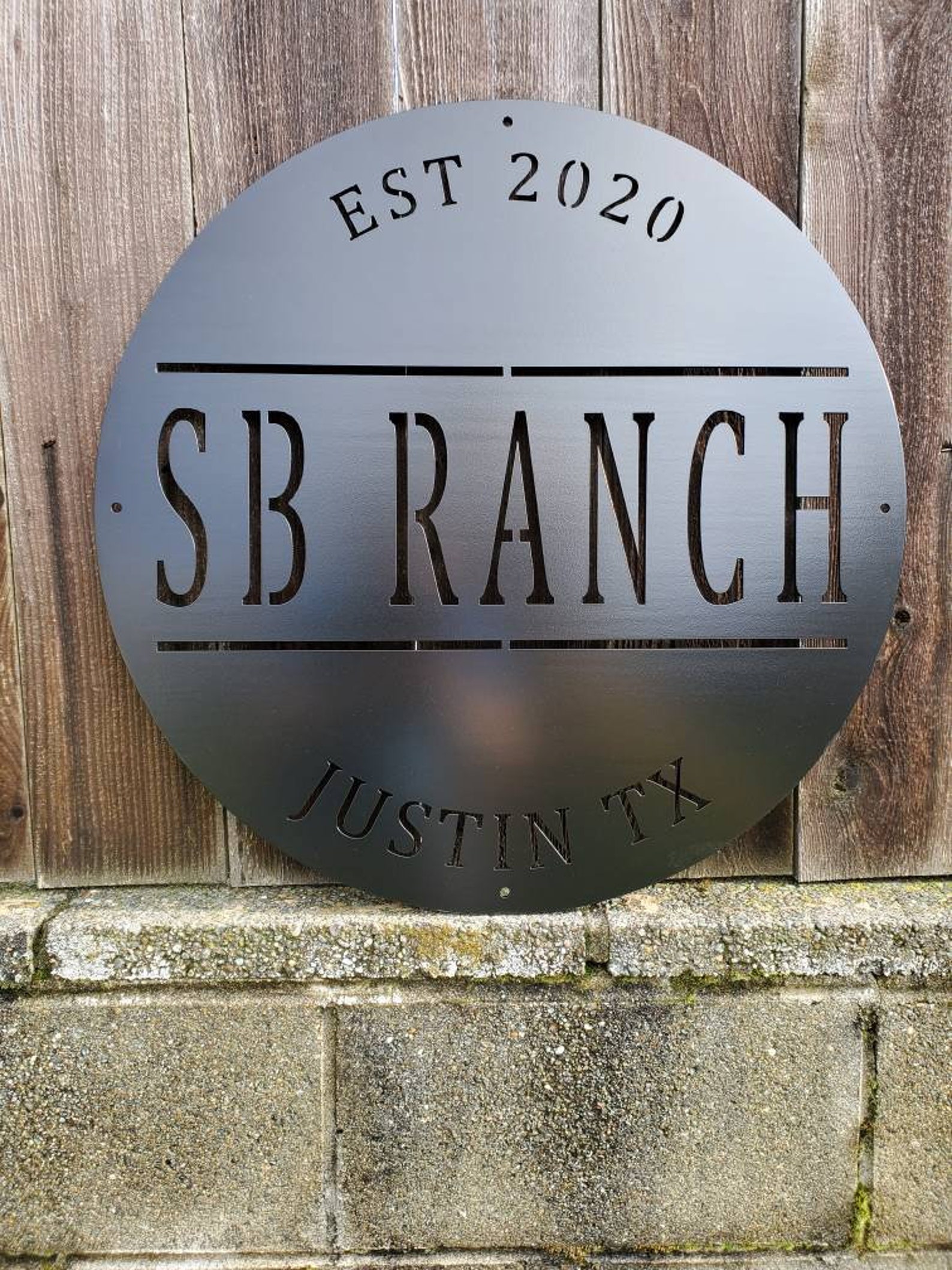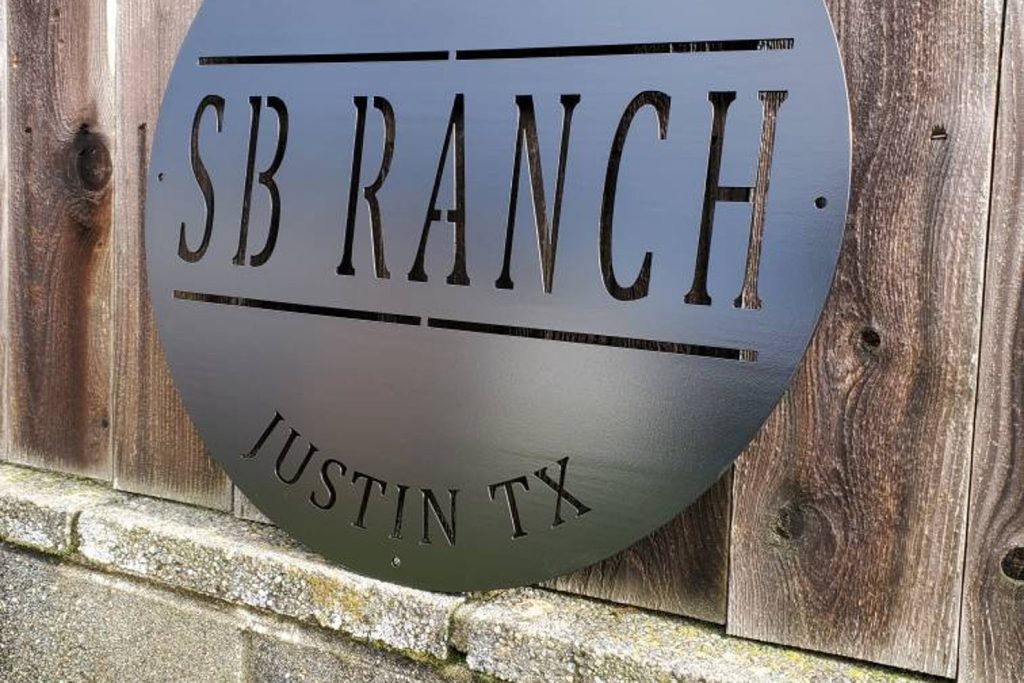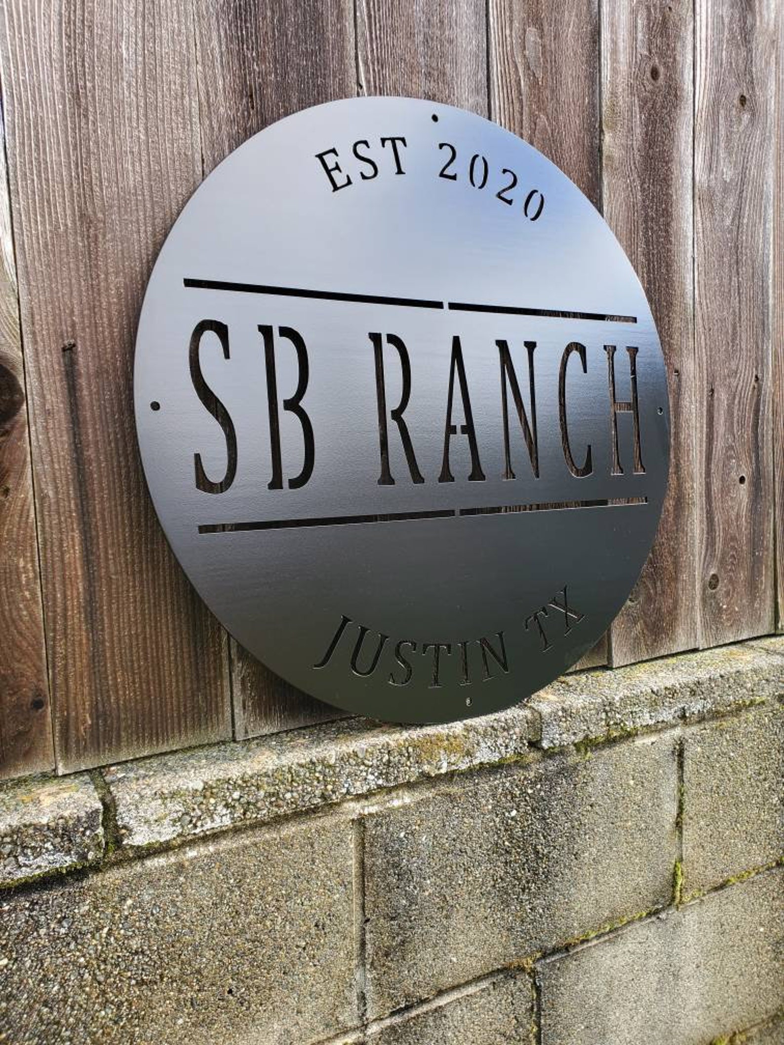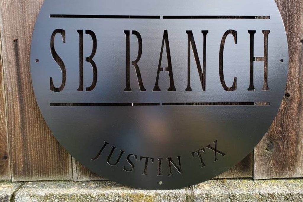 We do custom work as well. Made out of 12 gauge steel. Sign has a matte black finish and the size is 24 inch diameter. Perfect for any property entrance or wall decor. Built to hang from a post or mount wall.