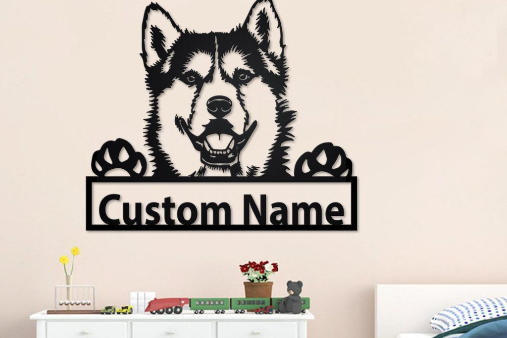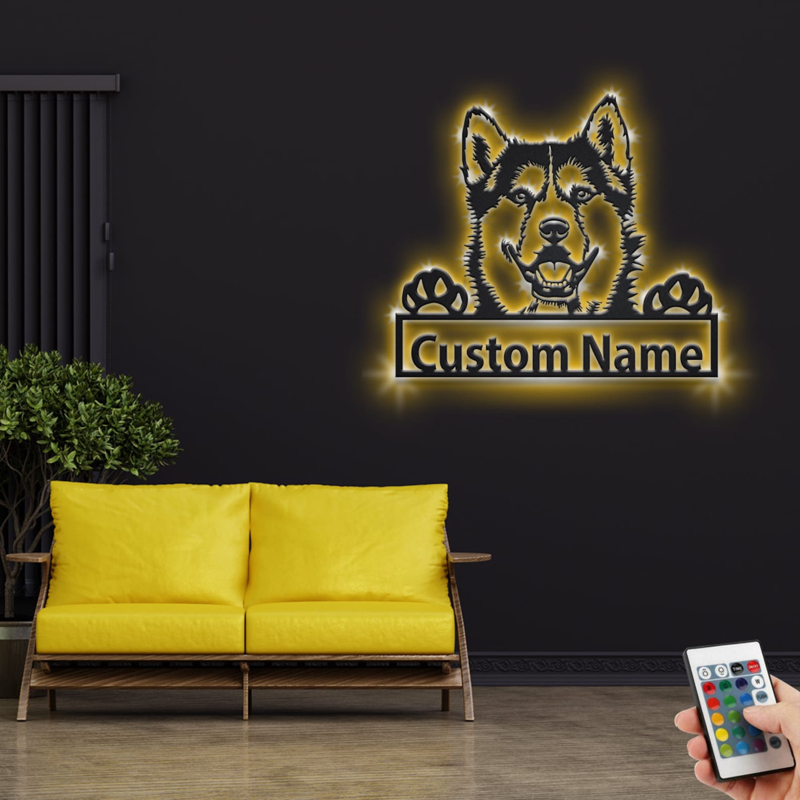 Custom Siberian Husky Metal Wall Art with LED – Personalized Name Sign