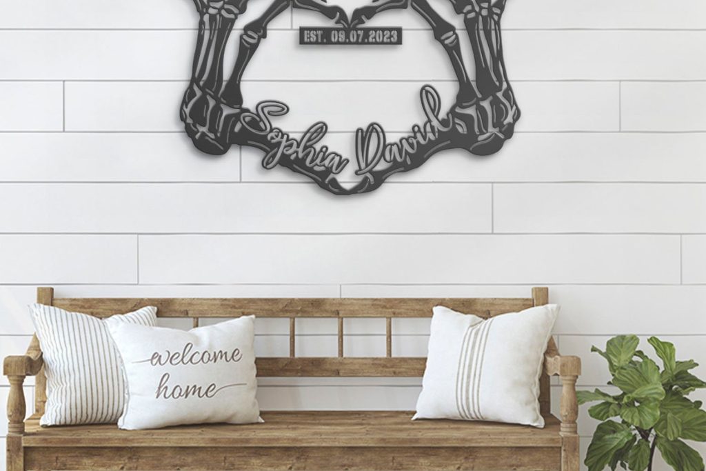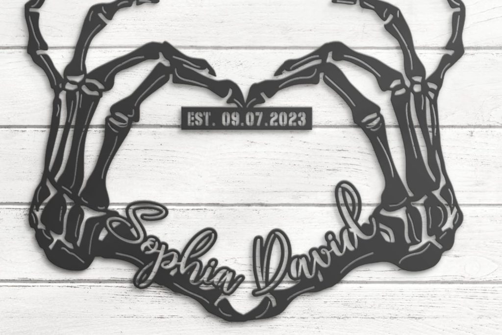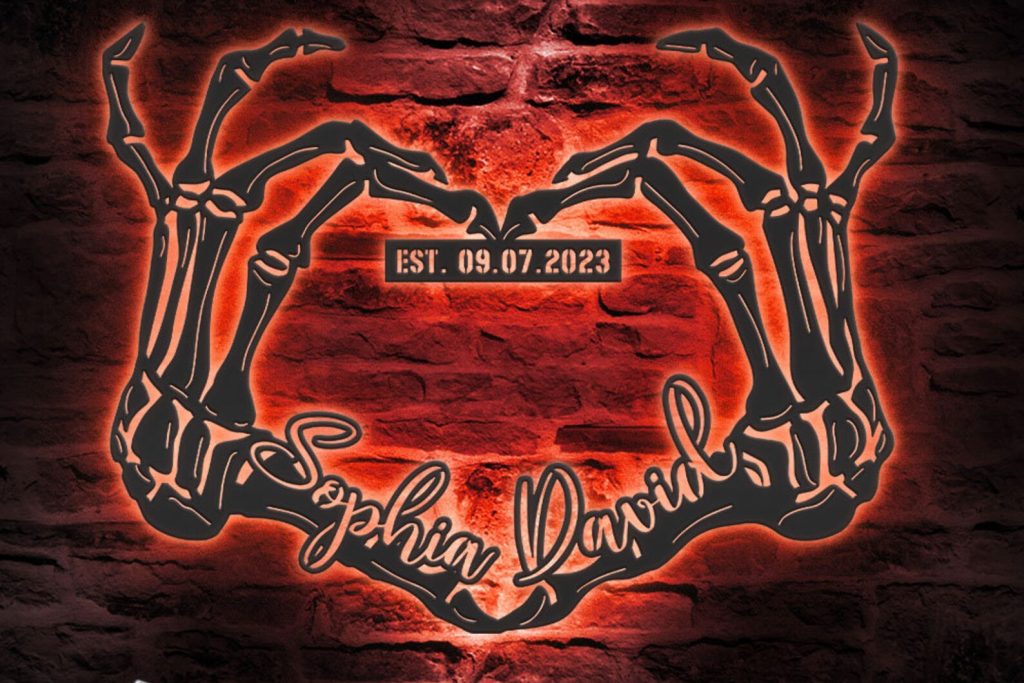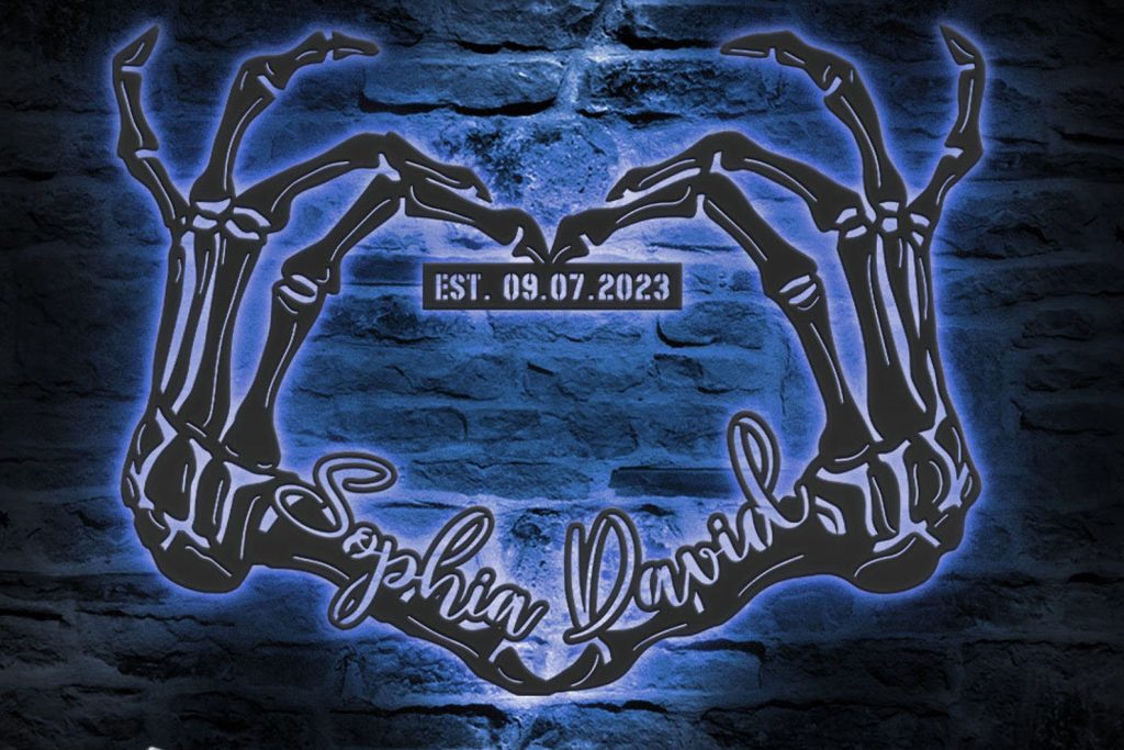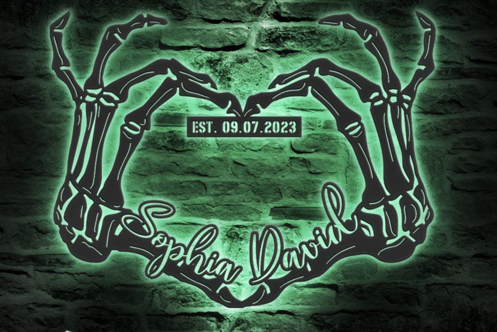 Be the first to review “Custom Skeleton Hand Heart Metal Sign with LED – Halloween”