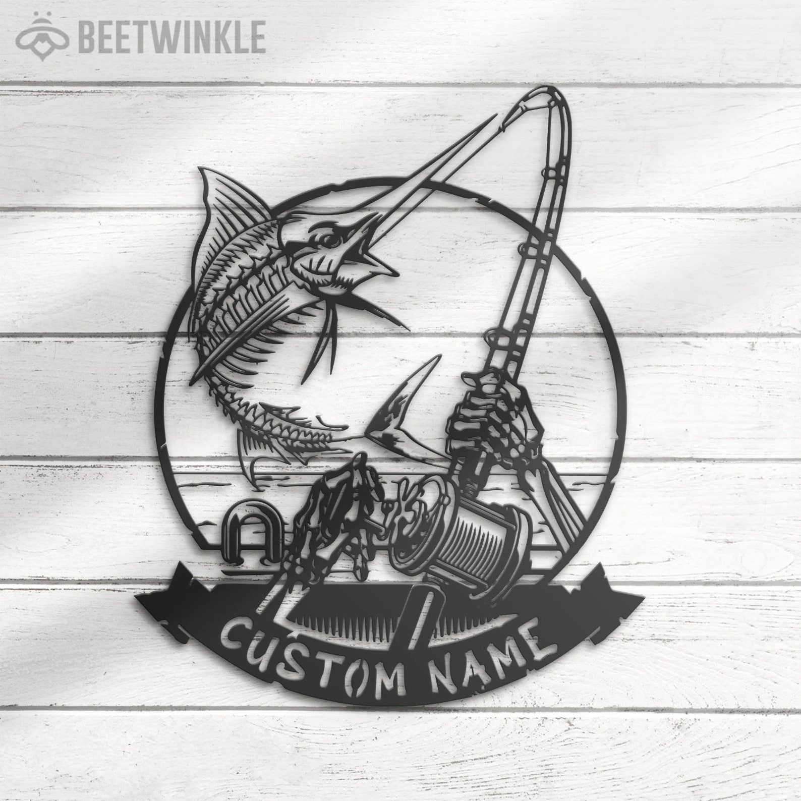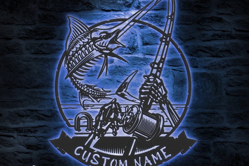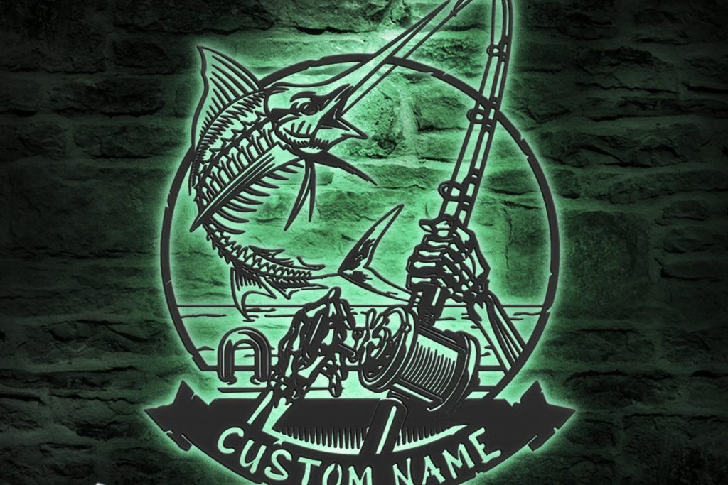 Custom Skeleton Marlin LED Metal Art – Skull Fisher Name Sign