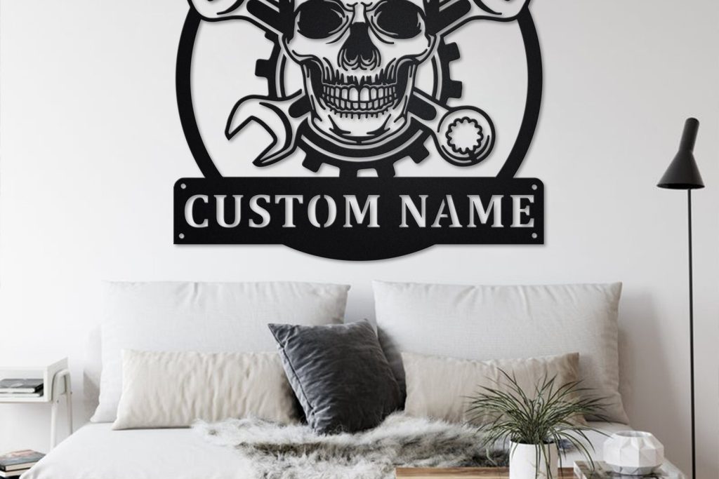 Custom Skull Mechanic Sign, Personalized Decor
