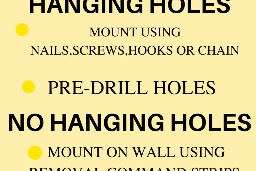 Hanging the sign from the design itself on a nail or screw is very common. Other commonly used methods to attach to a wall are removable command strips, ribbons, or rope.