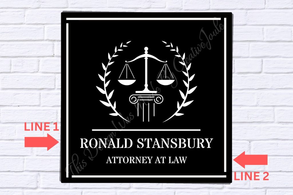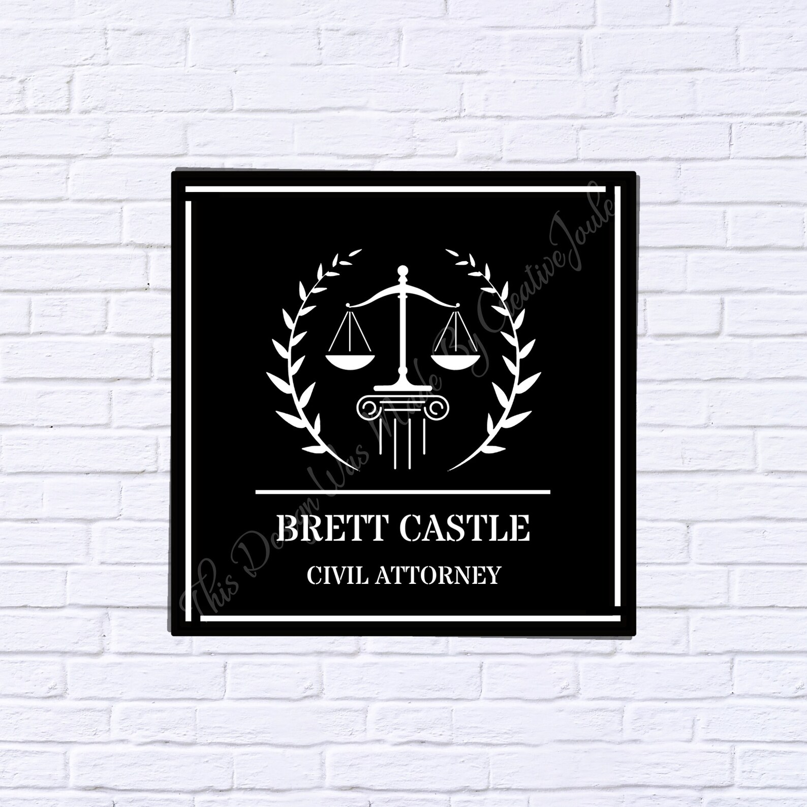 Custom Square Metal Attorney Sign, Justice & Liberty Decor