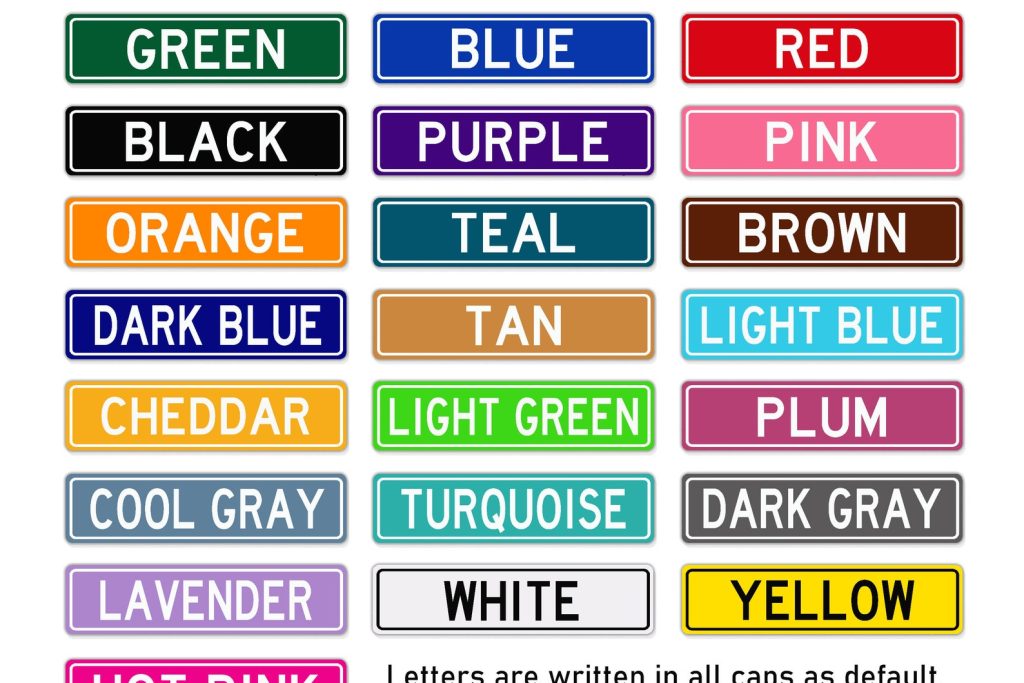 All letters are written in white. However, black letters are written on white and yellow signs. If you need a different combination, please specify.