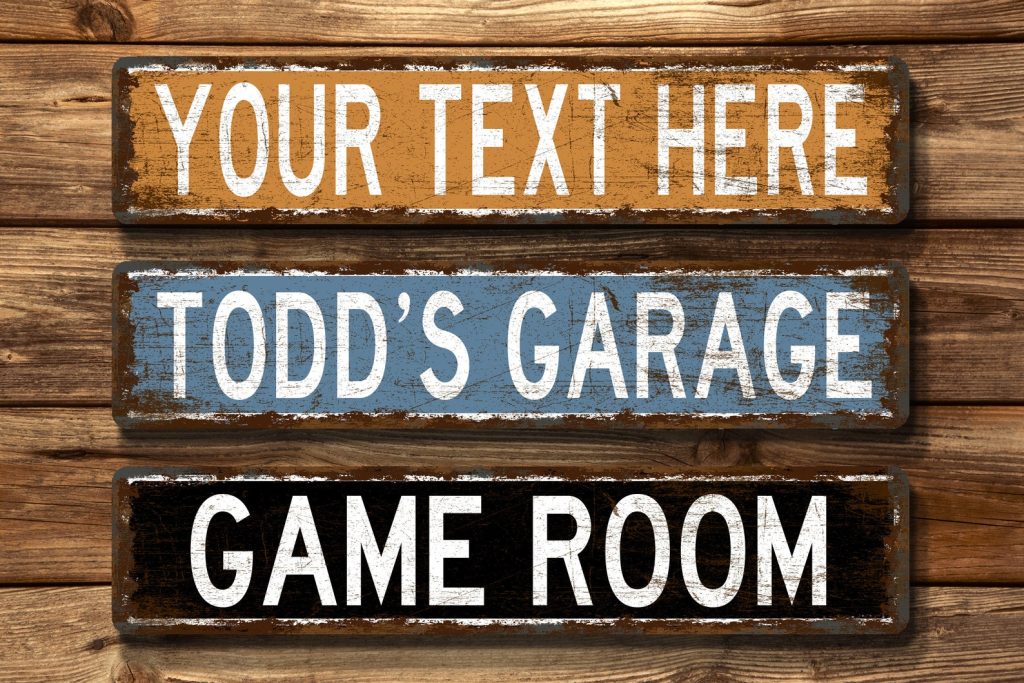 Please note: These signs do not have any raised or textured finish. Any rust, scratches or other markings are part of the images used to give the sign a nice vintage appeal. The finish is smooth satin. These signs can be printed on 1 side or 2 sides.