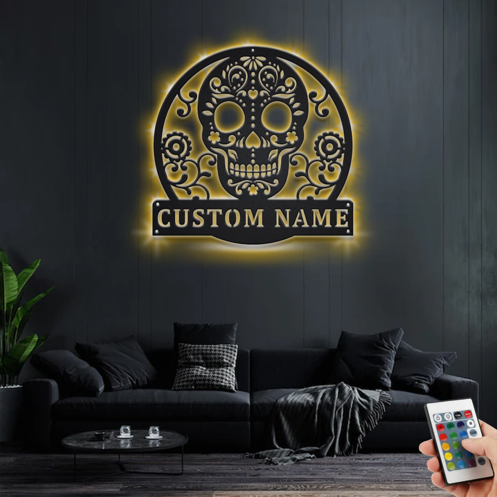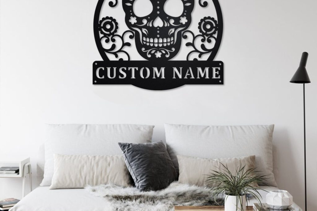 Be the first to review “Custom Sugar Skull Metal Wall Art with LED Light, Personalized Name Sign”