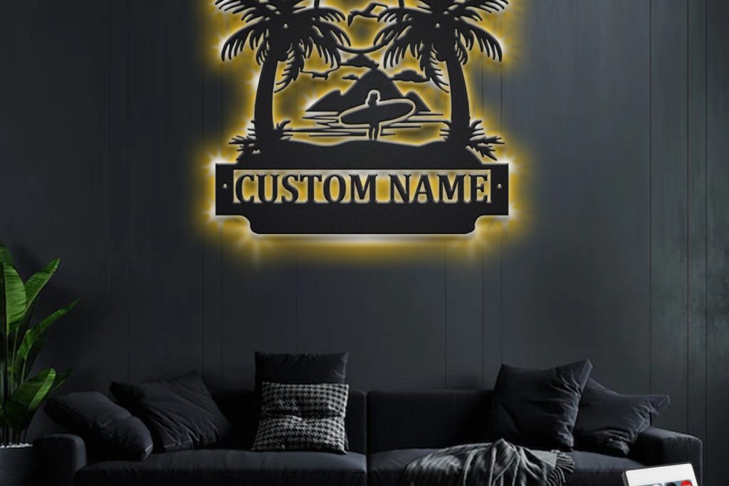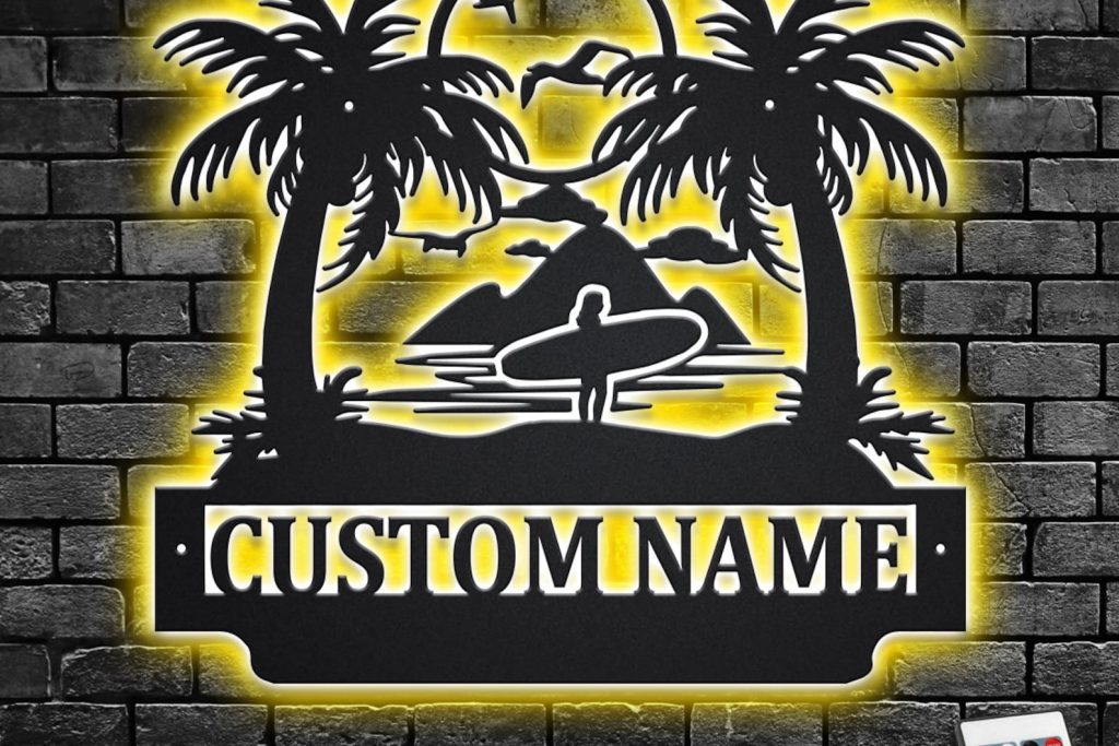 Custom Summer Vibes Surfer Metal Sign with LED – Room Decor