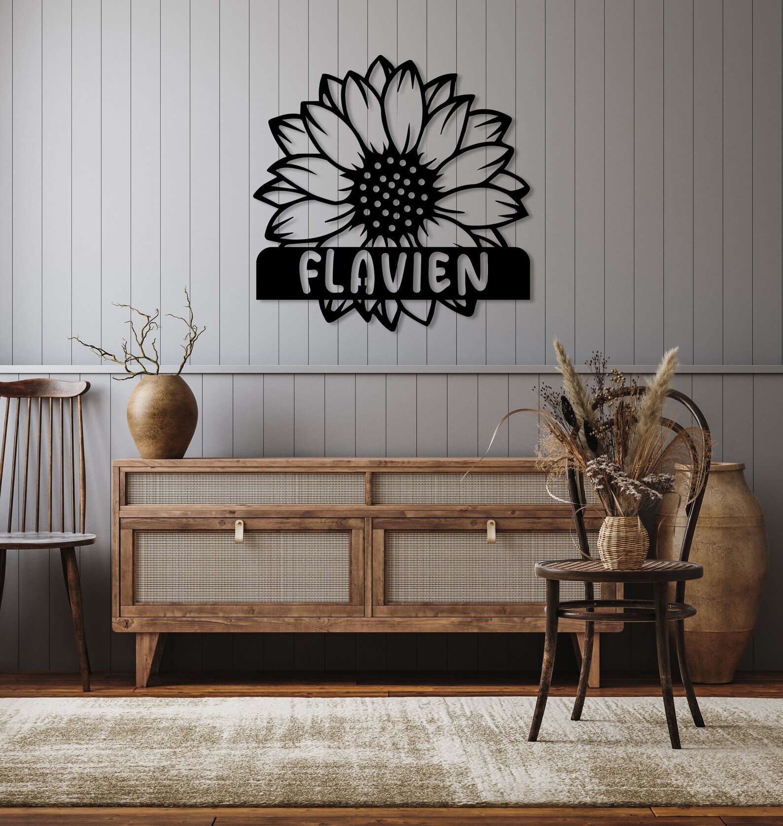 Custom Sunflower Metal Sign, Personalized Sunflower Name Sign, Flower Wall Decor, Outdoor Decor, Custom Gift, Home Decor, Sunflower Monogram