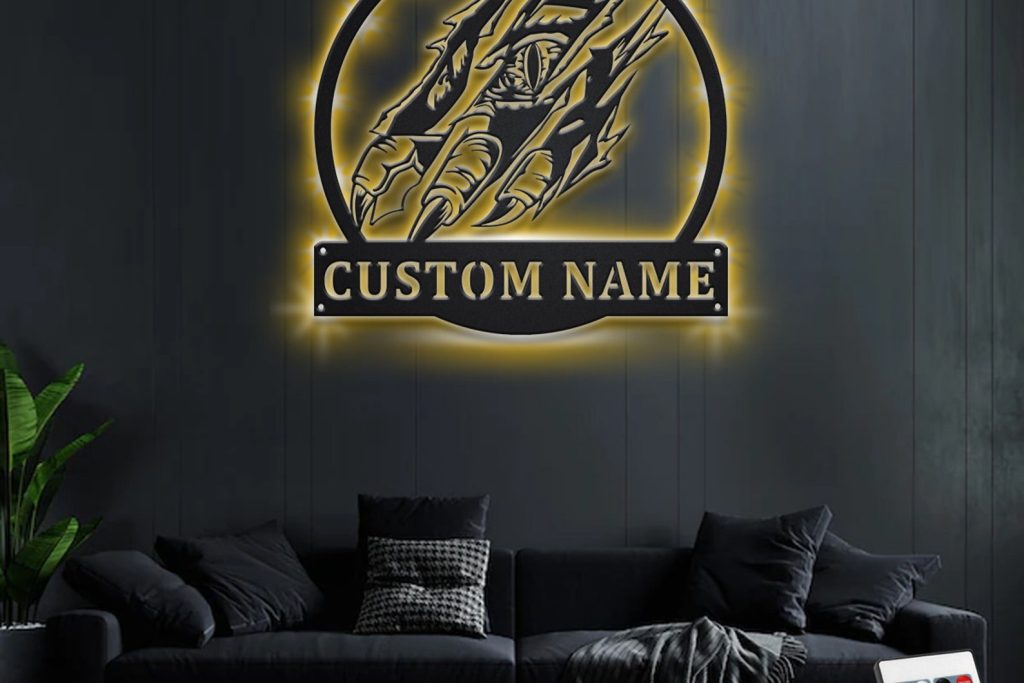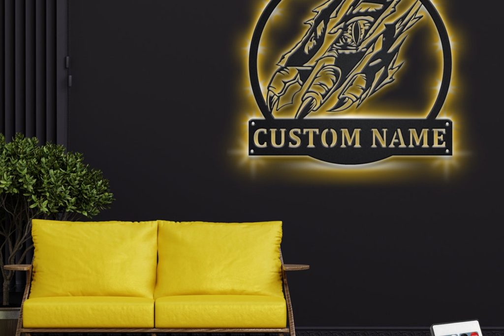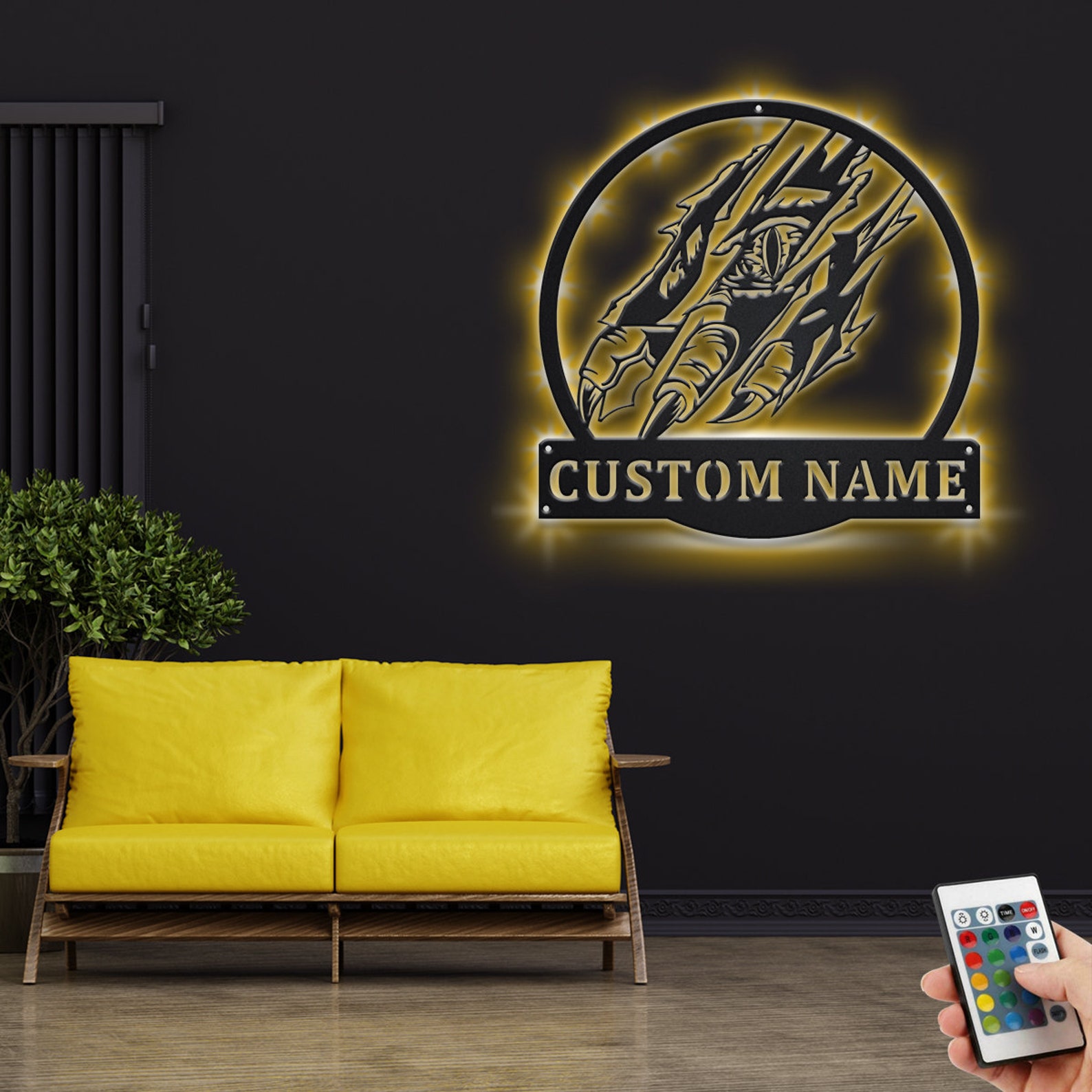Custom T-Rex Eye Scratch Metal Wall Art with LED Light
