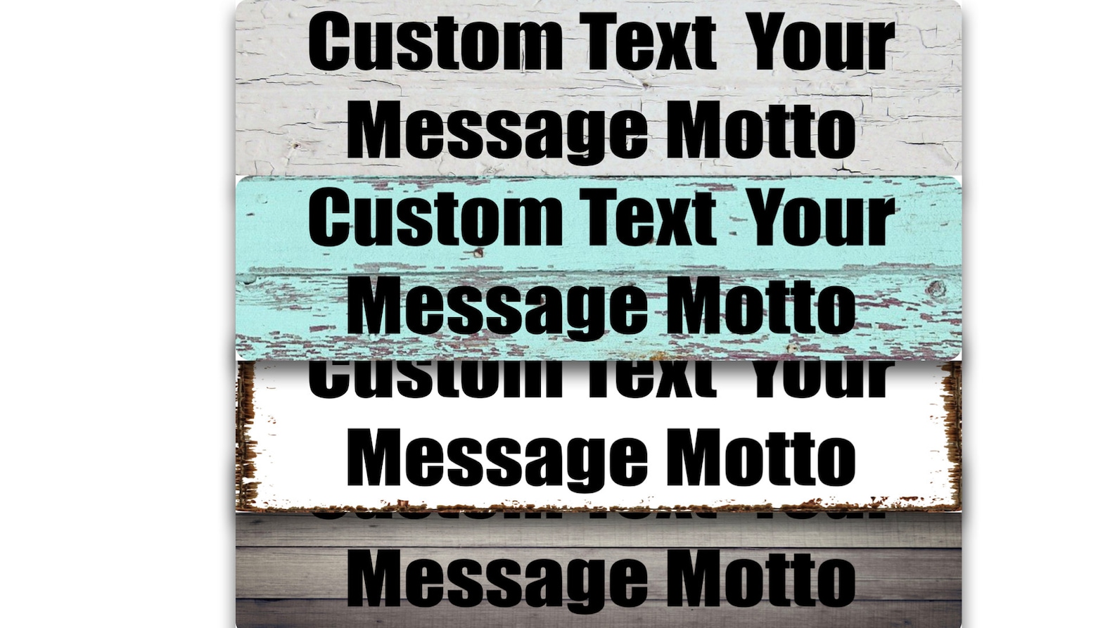 Custom Text Metal Sign with Bold Font & Wood or Rusty Background