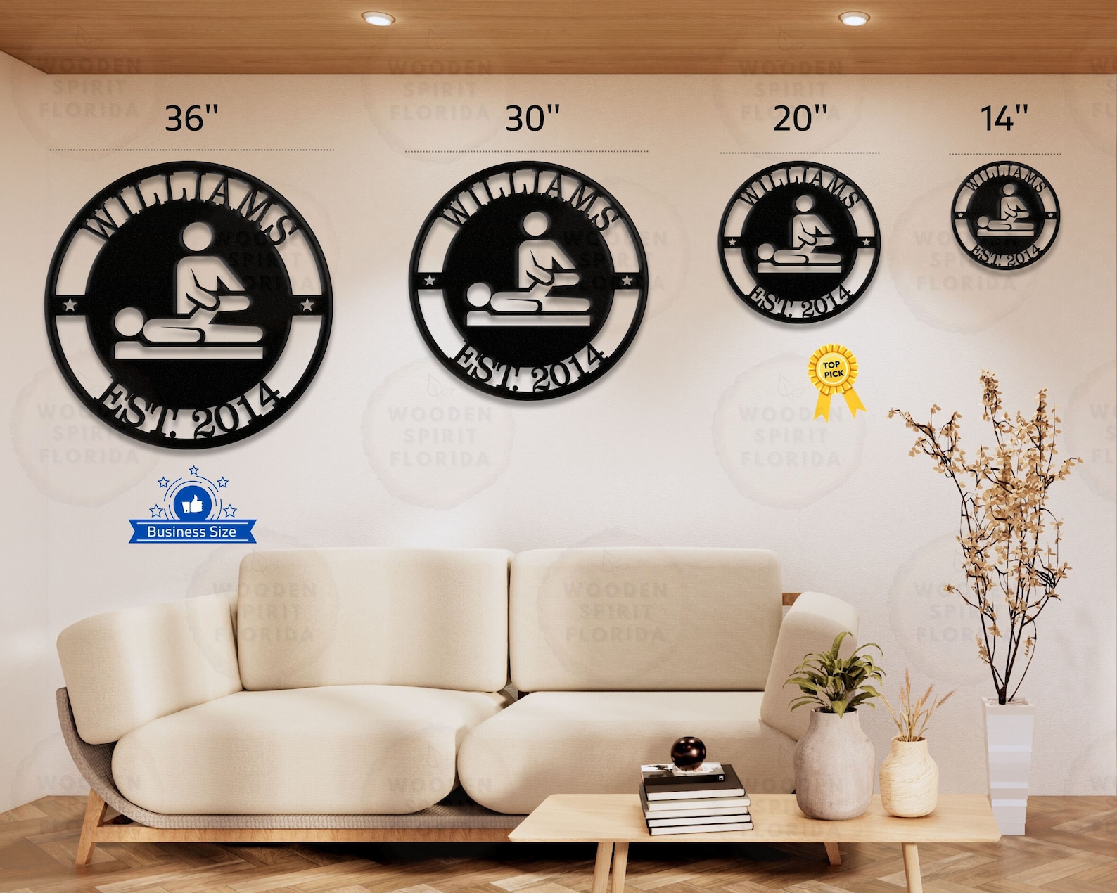 6 Sizes – 36", 30", 24", 18", 14", 12" *Selected size is based on the maximum height or width of the sign depending on physical orientation