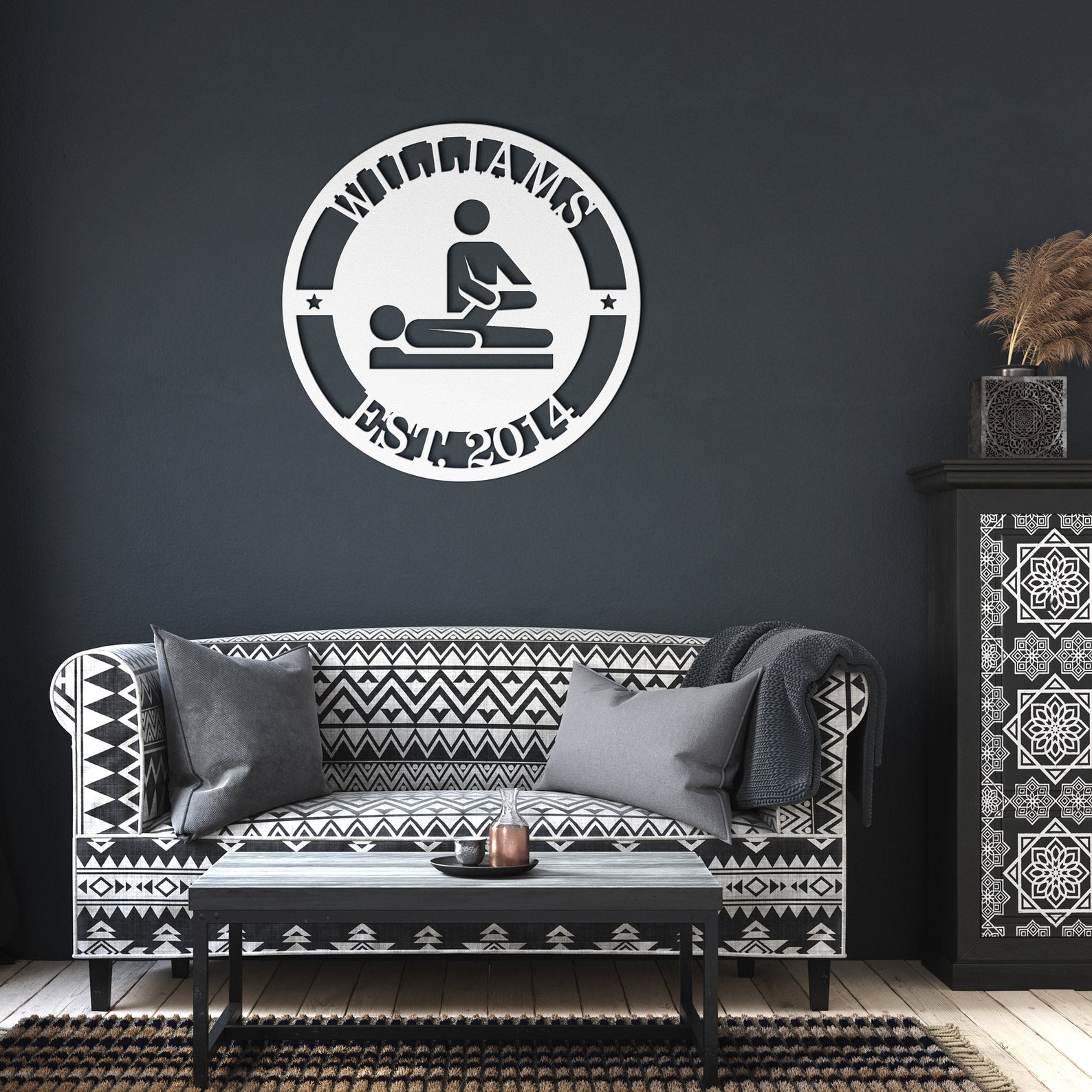 Upgrade your living space with our meticulously crafted metal sign, designed to bring a touch of elegance both indoors and out. Crafted from durable 18 gauge steel, each sign is powder-coated in your choice from 5 stunning colors: Black, Red, White, Copper, or Silver. With 6 size options ranging from 12" to 36", you can select the perfect fit based on the sign9;s maximum height or width, relative to its design orientation. Built to endure, our signs resist the elements, ensuring lasting beauty and charm for years to come. Orders will be dispatched from our production facility in Sioux Falls, South Dakota. During peak demand times, such as Christmas, Fathers Day, Mothers Day we may ship orders from Turkey to ensure timely delivery.