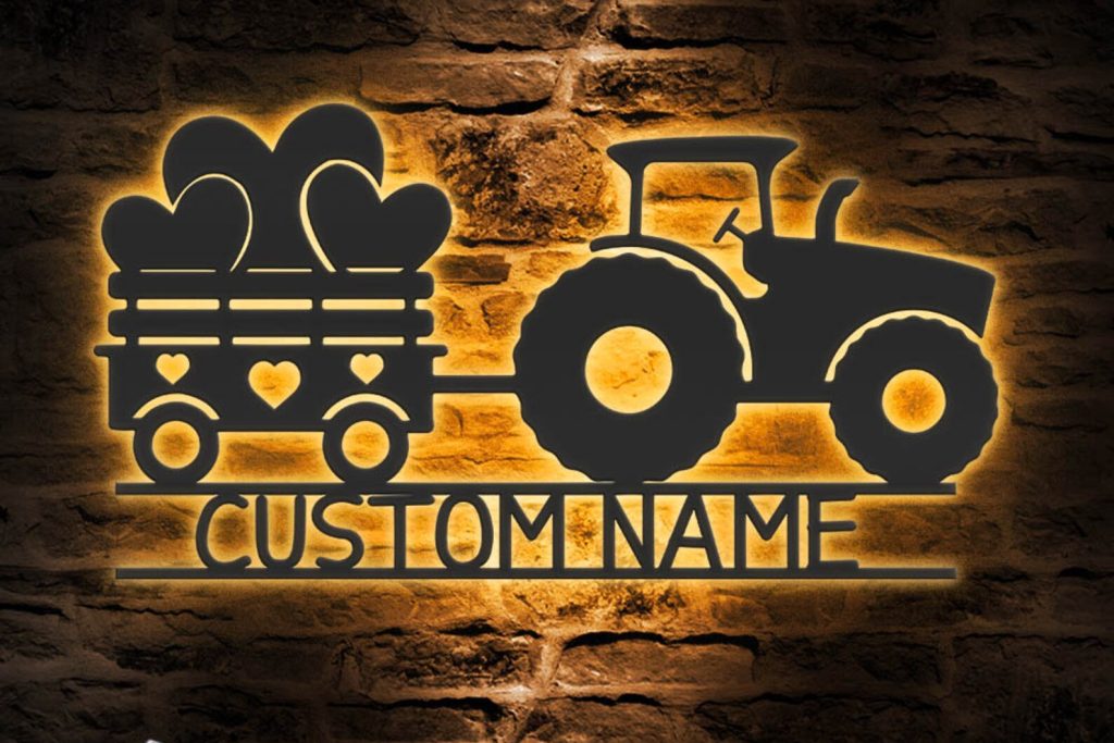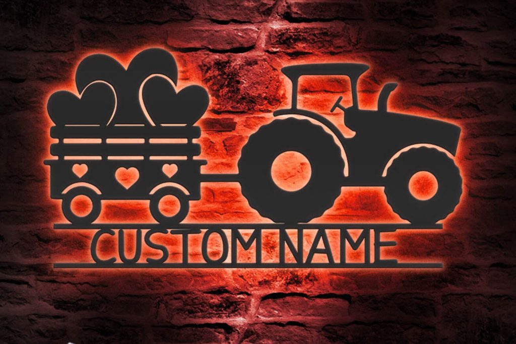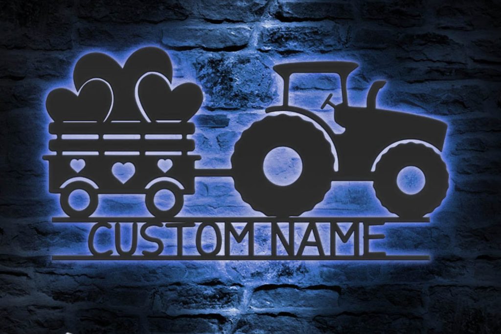 Custom Tractor Love Metal Sign with LED – Farmer Decor