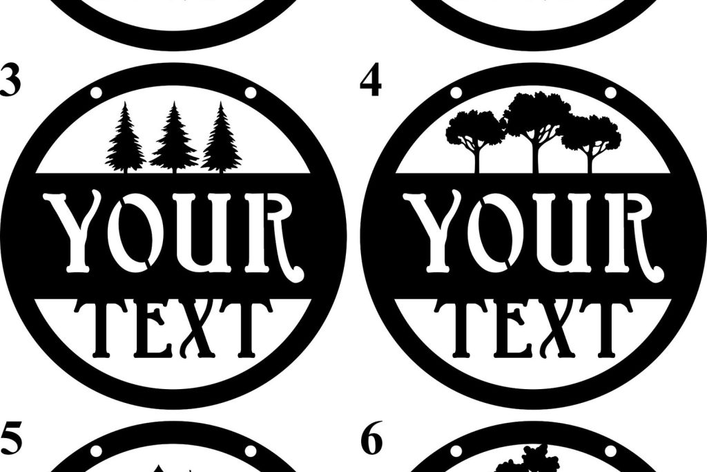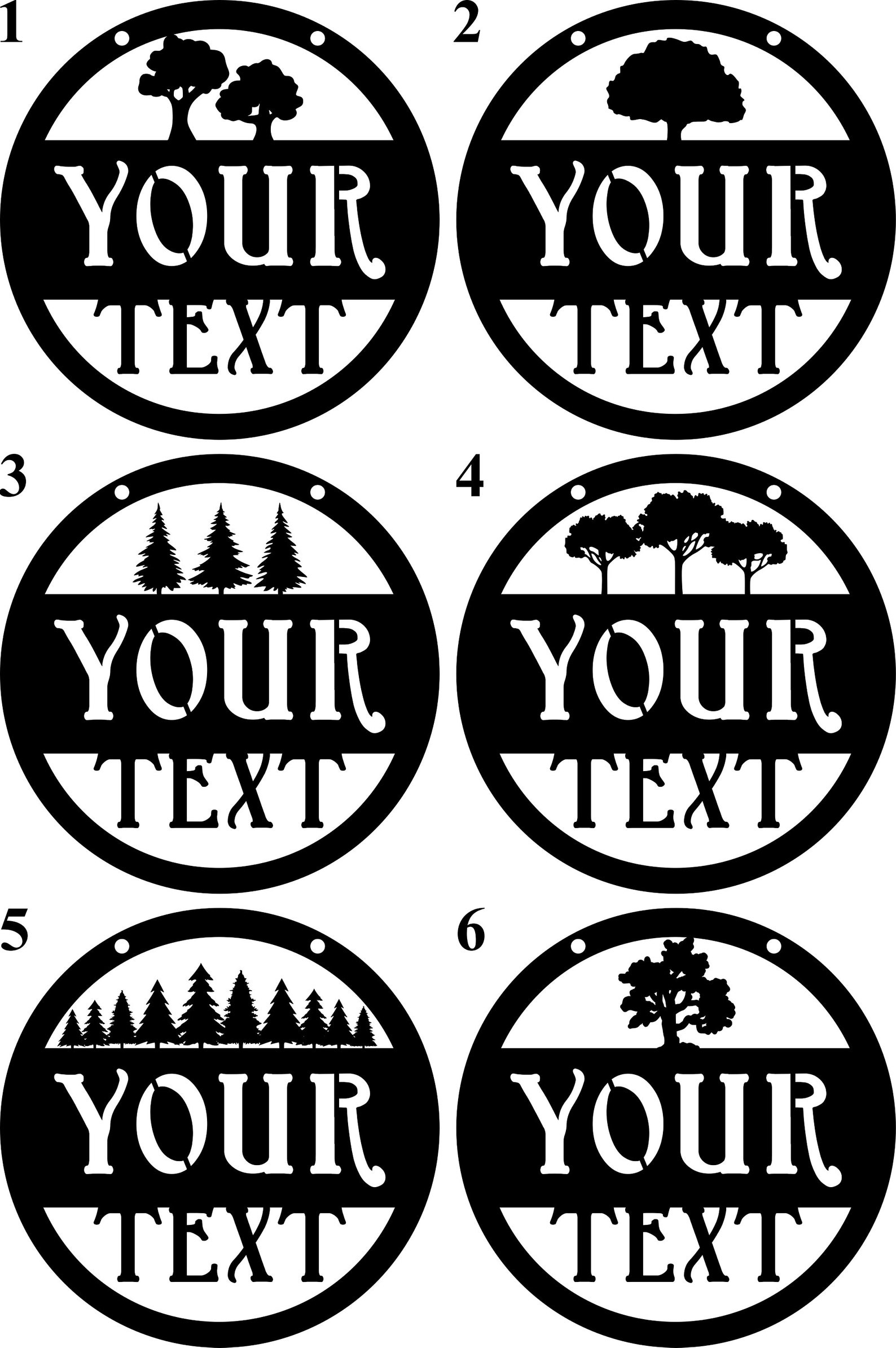Customize this sign with an image: Oak Trees (1), Single Oak Tree (2), Pine Trees (3), Apple Trees (4), Tree Line (5), Dogwood Tree (6). Leave a Note to Seller at checkout with the image you would like.