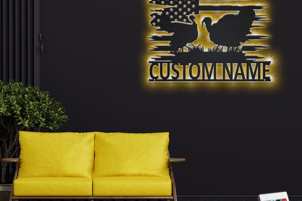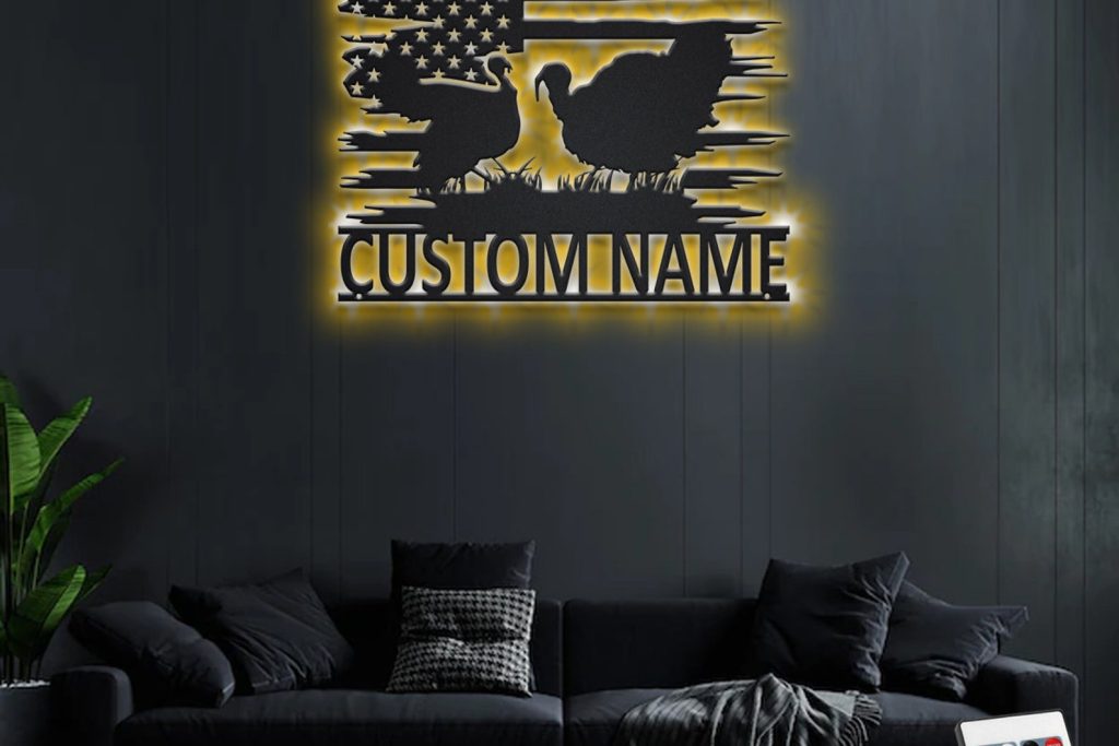 Custom Turkey Hunting Metal Sign, LED Light, Hunter Decor