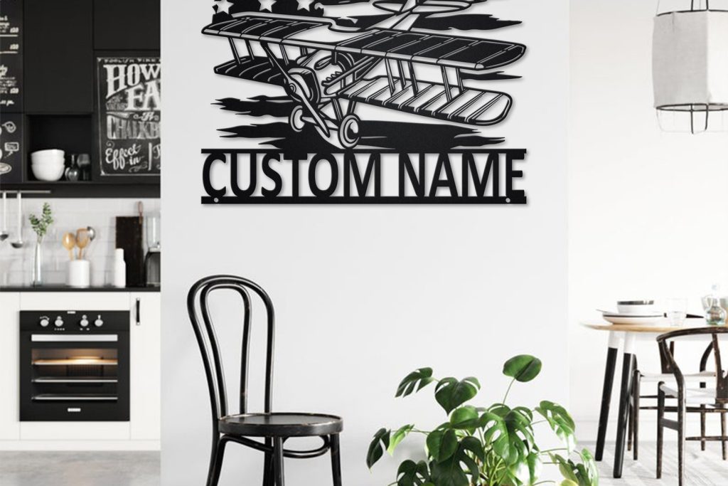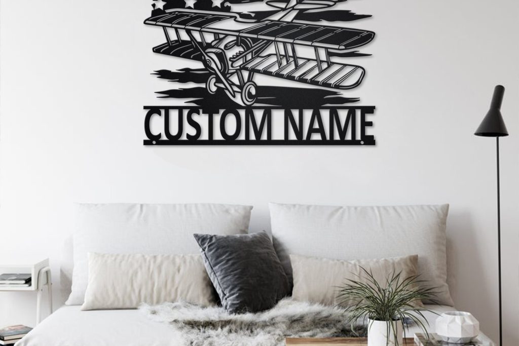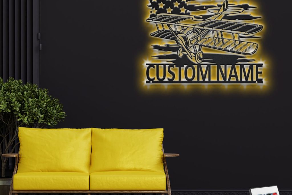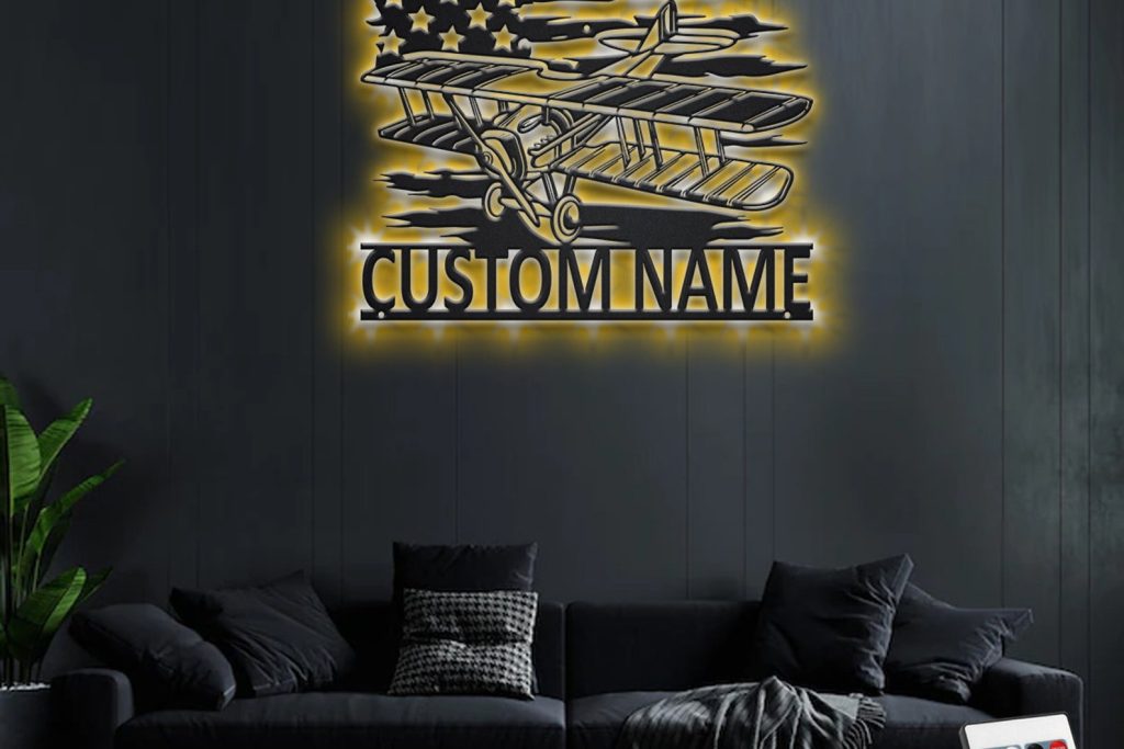 Custom US Biplane Metal Sign with LED – Pilot Room Decoration