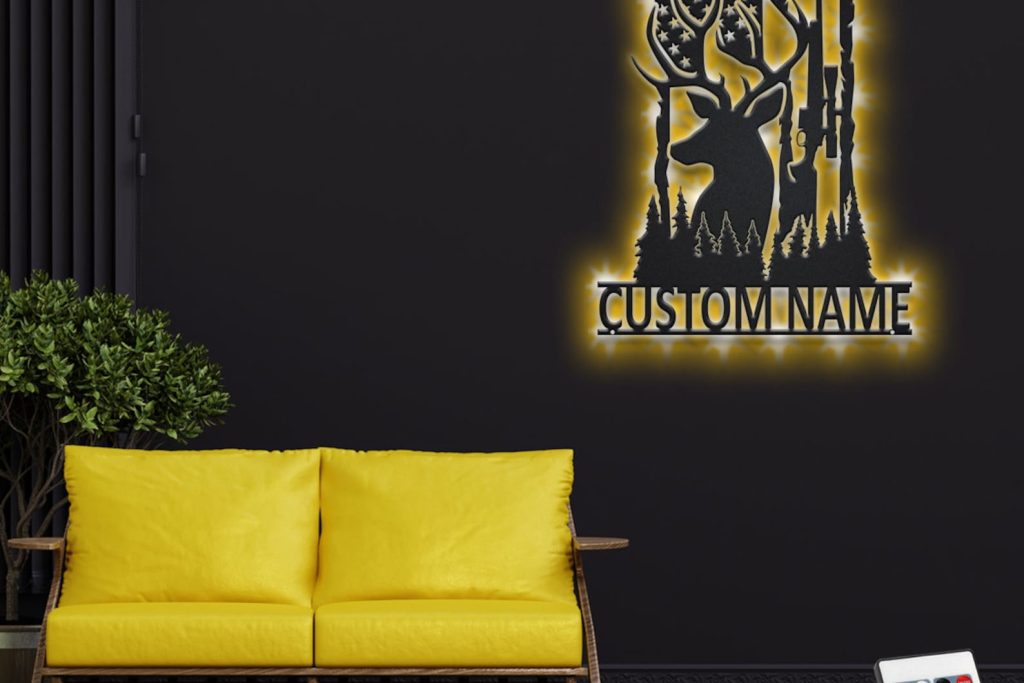 Custom US Deer Hunting Metal Sign with LED V1 – Hunter Decor