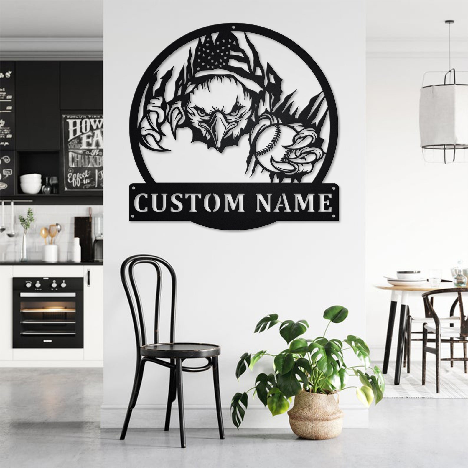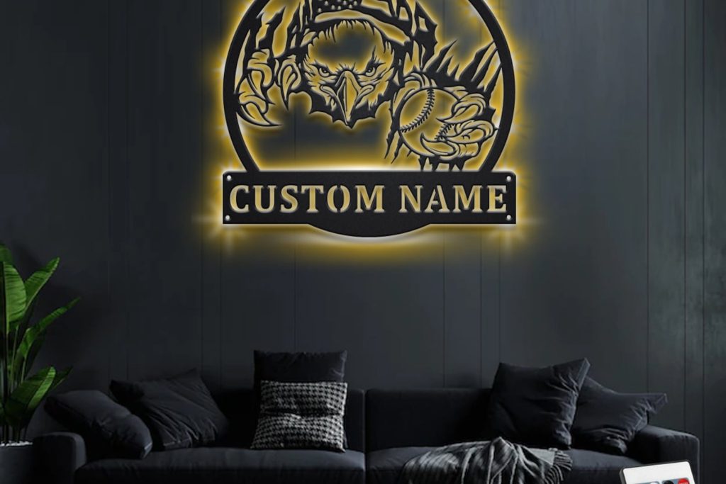 Custom US Eagle Baseball Metal Sign with LED – Player Decor