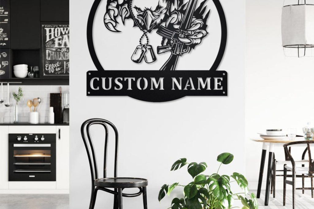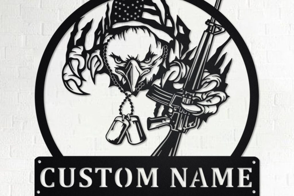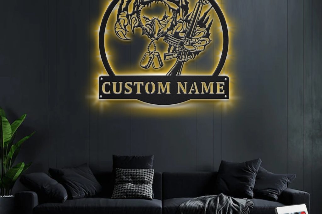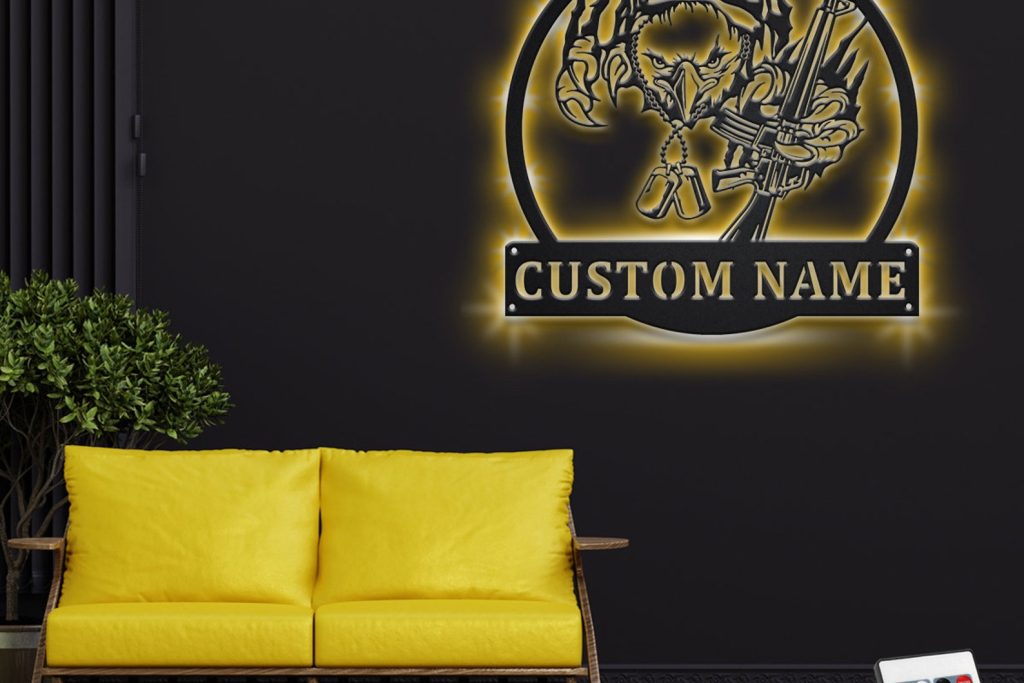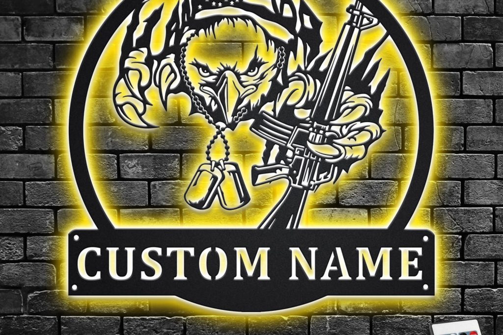 Custom US Eagle Veteran Metal Sign with LED – Room Decor