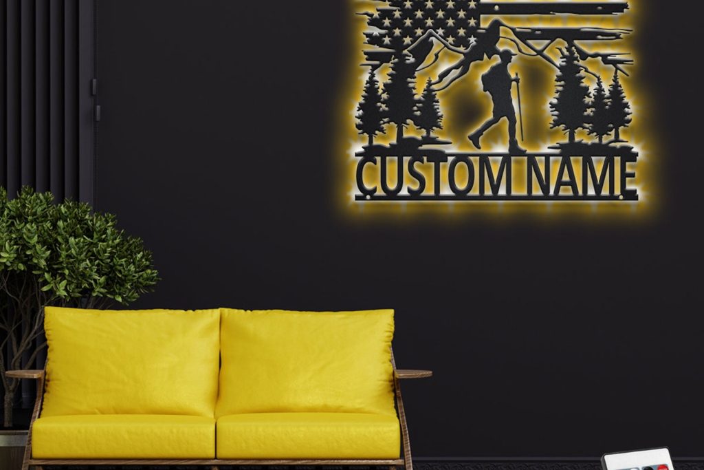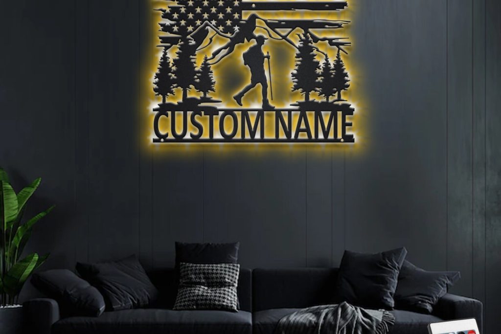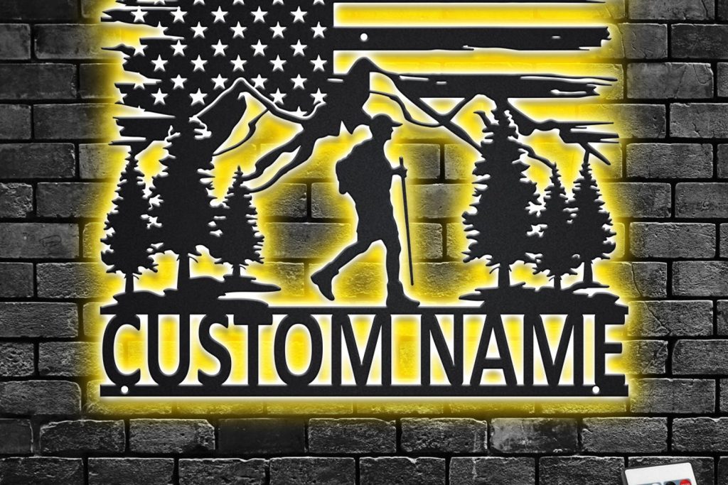 Be the first to review “Custom US Hiking Mountain Metal Sign with LED – Hiker Decor”