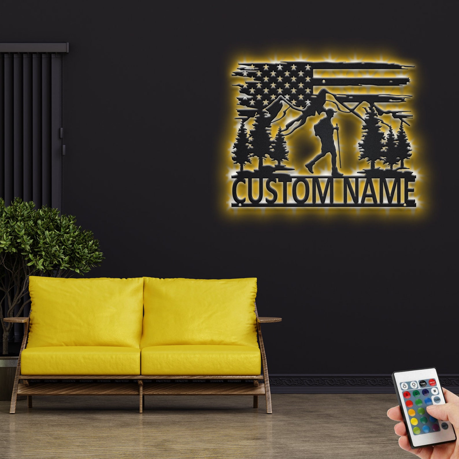 Custom US Hiking Mountain Metal Sign with LED – Hiker Decor