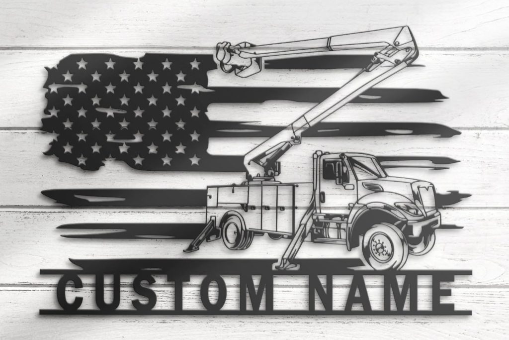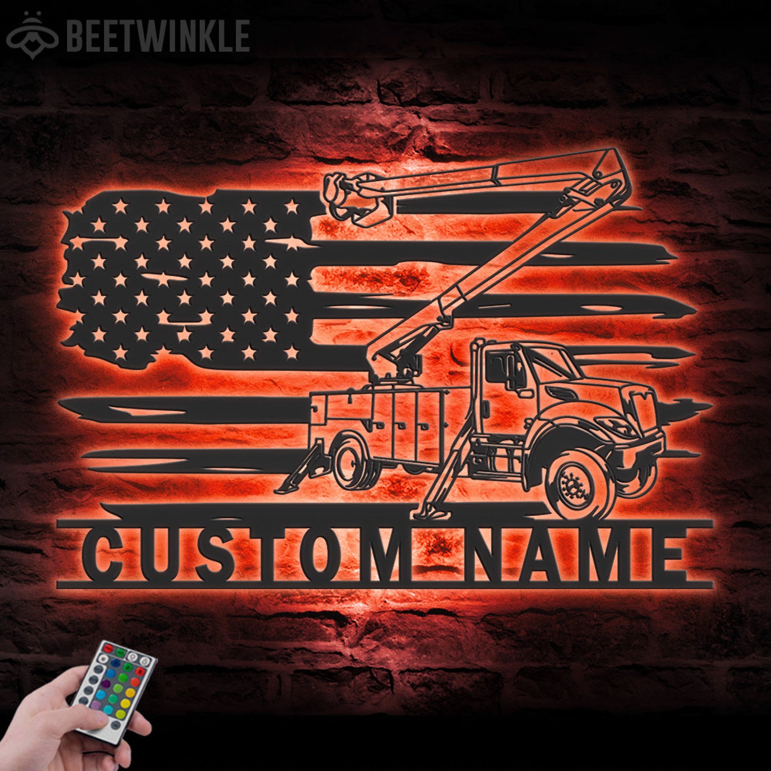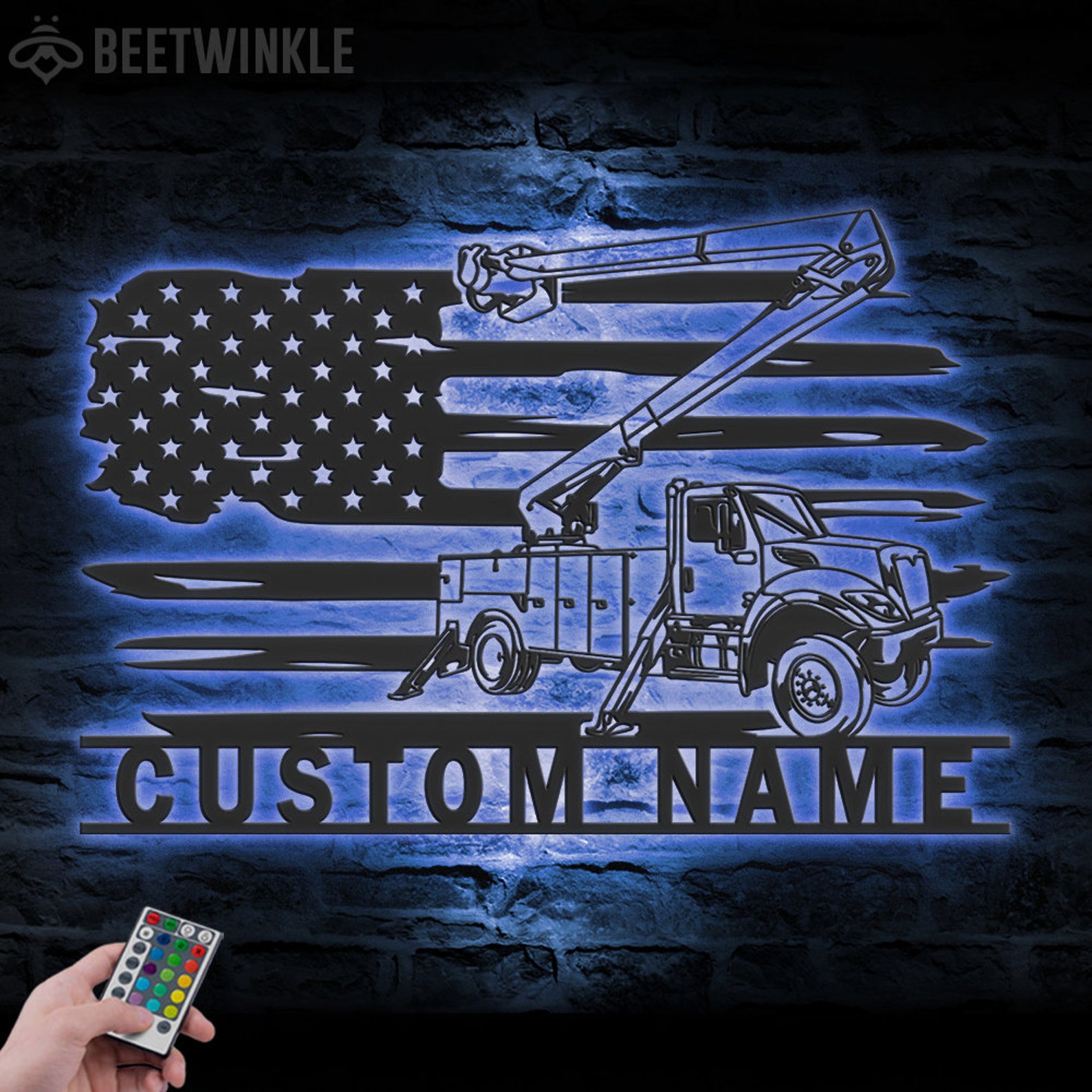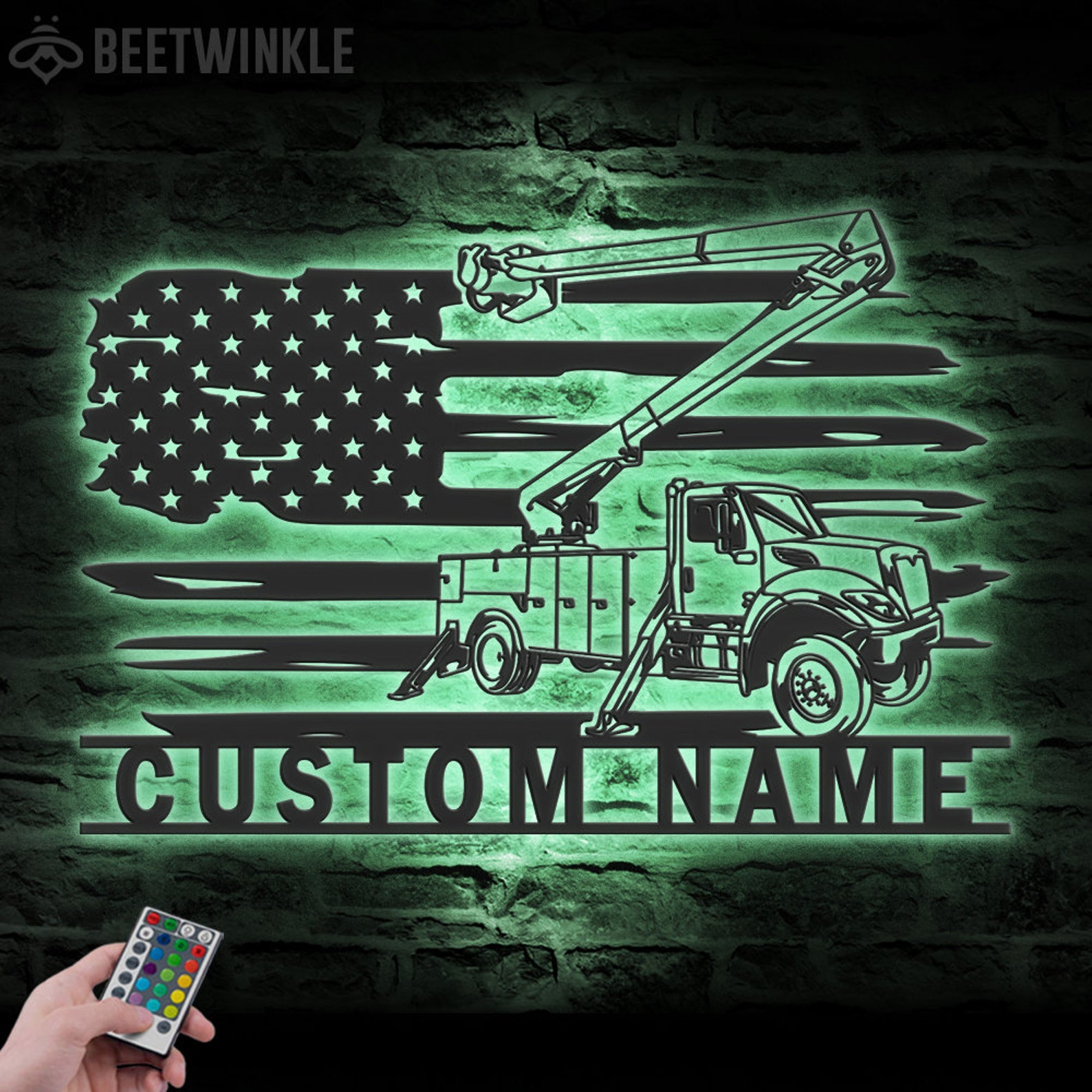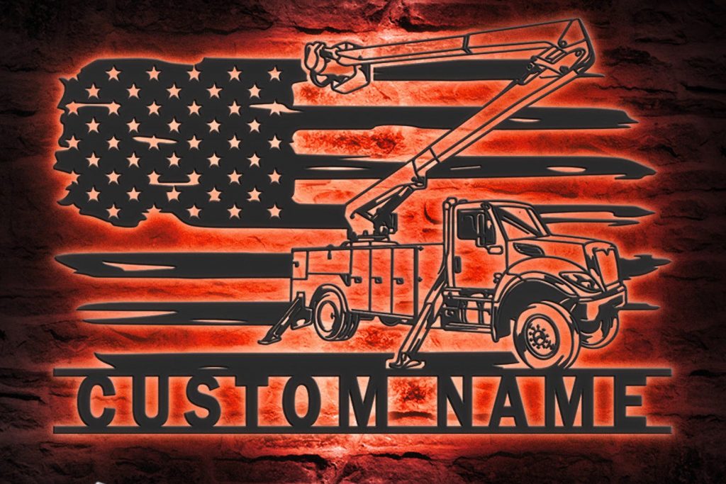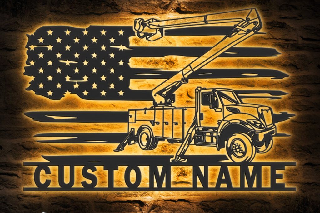 Be the first to review “Custom US Lineman Bucket Truck Metal Art with LED Light”