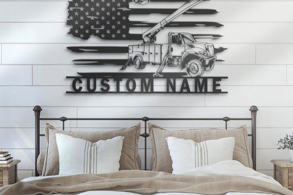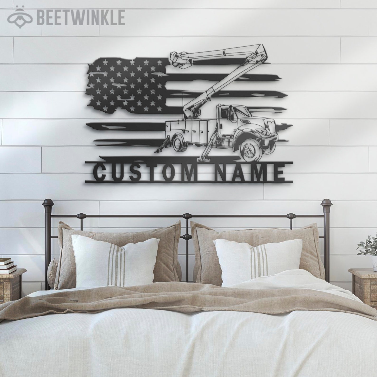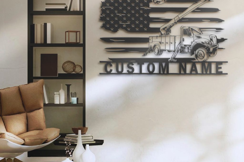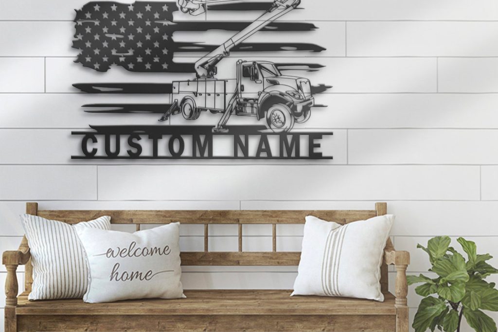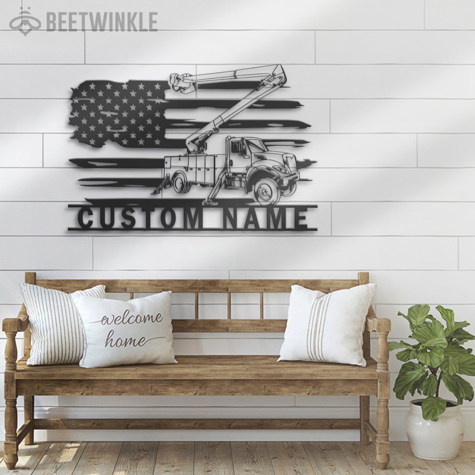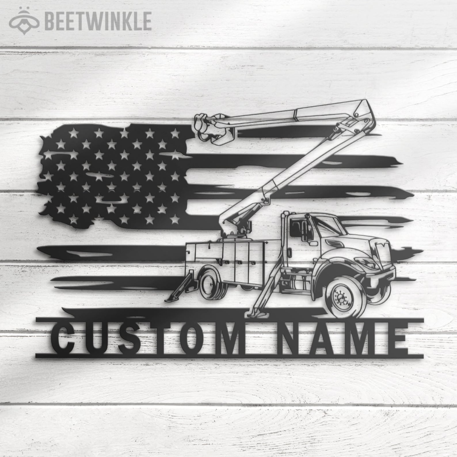 Be the first to review “Custom US Lineman Bucket Truck Metal Art with LED Light”