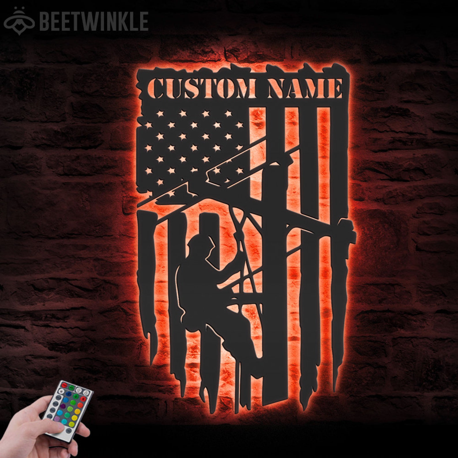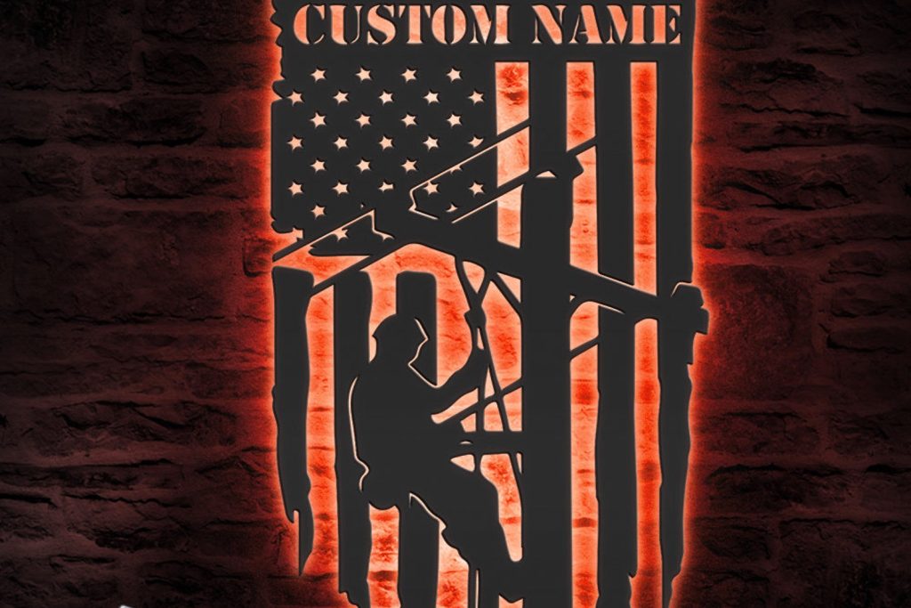 Be the first to review “Custom US Lineman Metal Art with LED Light”
