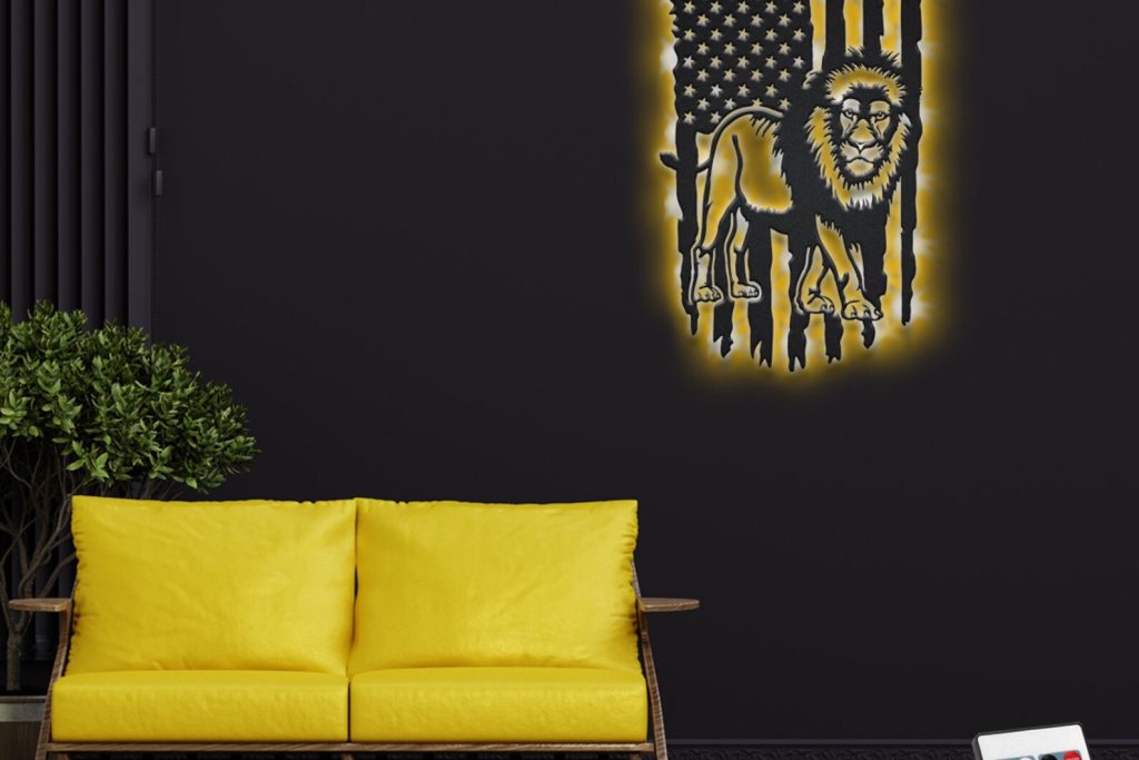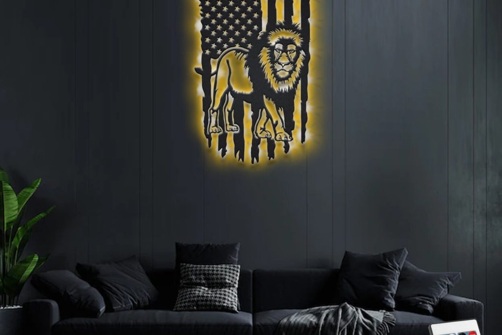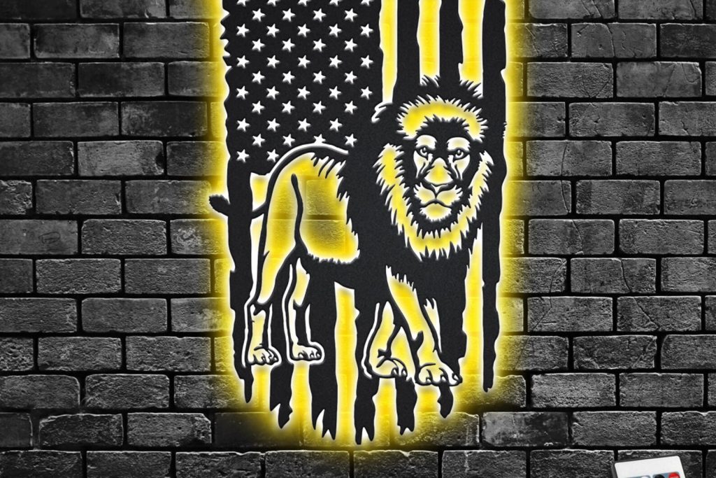 Be the first to review “Custom US Lion Metal Sign with LED – Room Decoration”