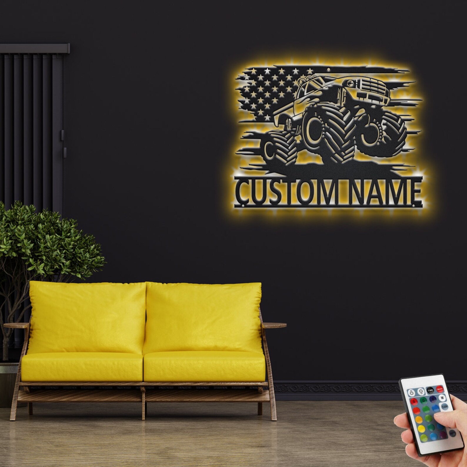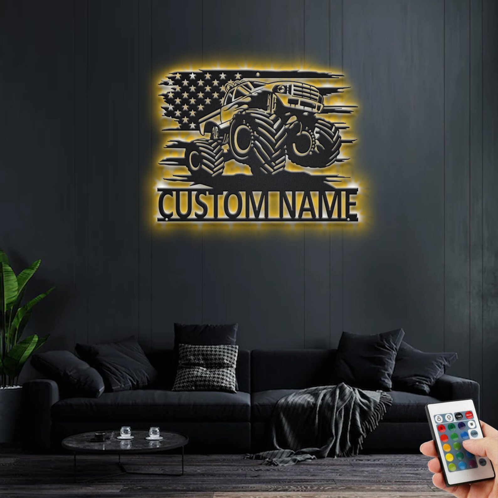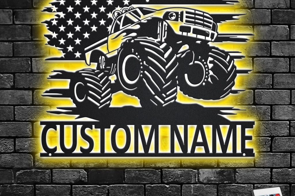Be the first to review “Custom US Monster Truck Metal Art with LED Light”