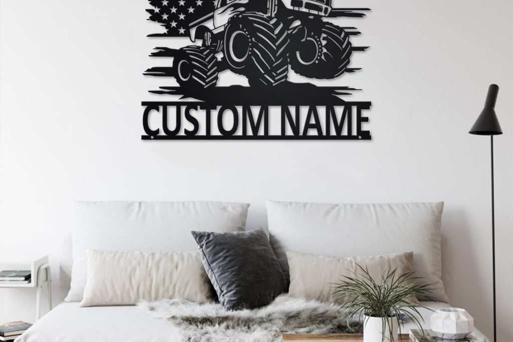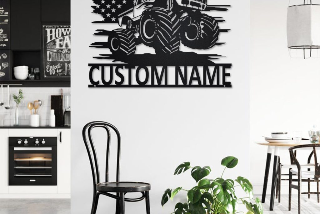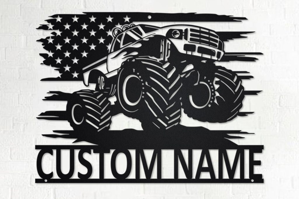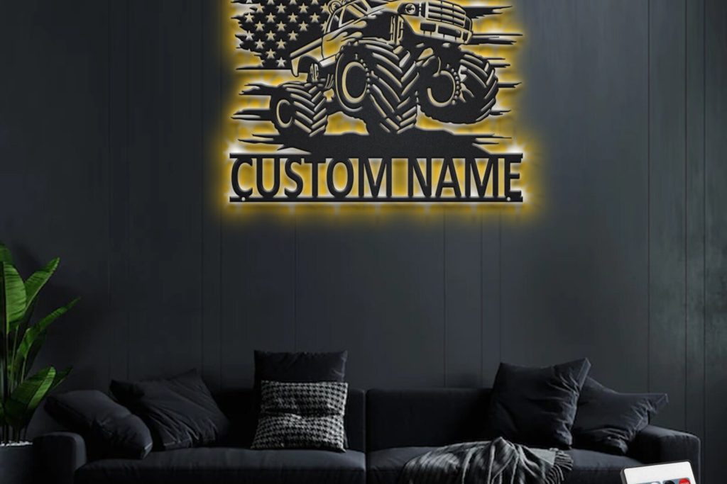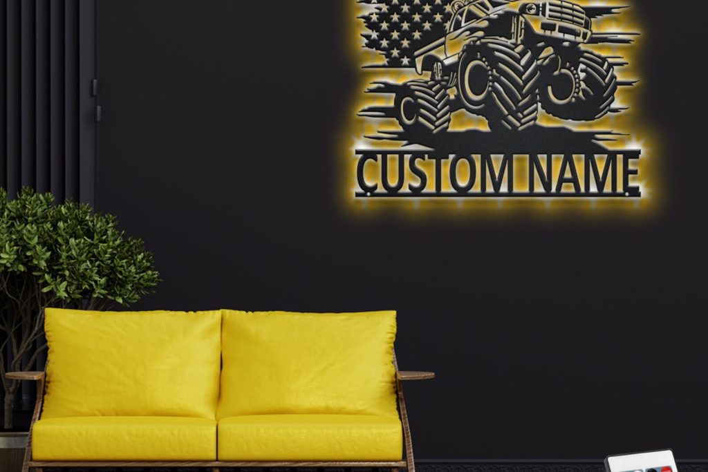 Be the first to review “Custom US Monster Truck Metal Art with LED Light”