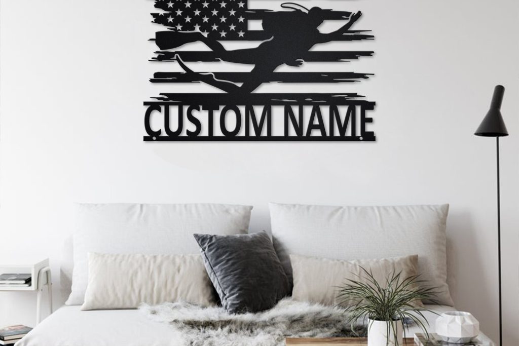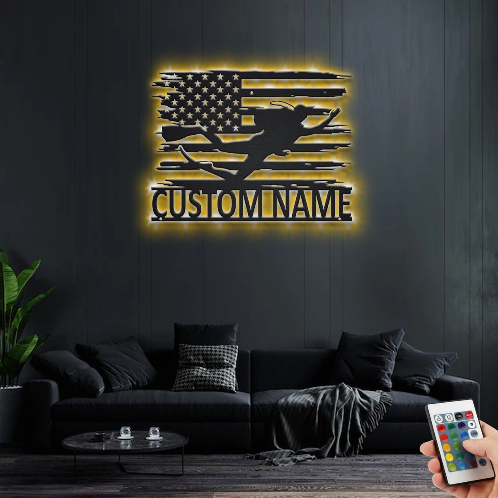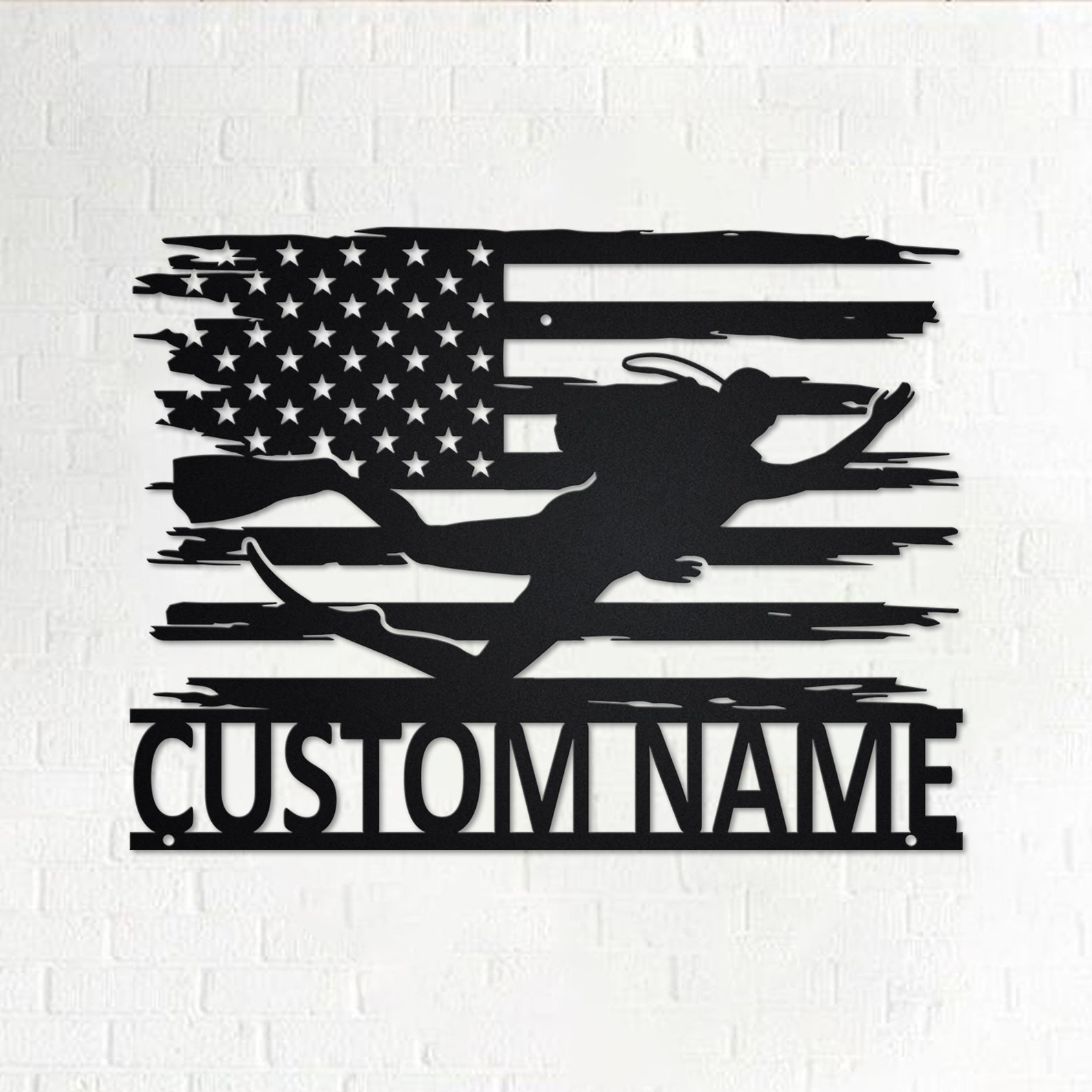 Custom US Scuba Diver Metal Sign with LED – Room Decor