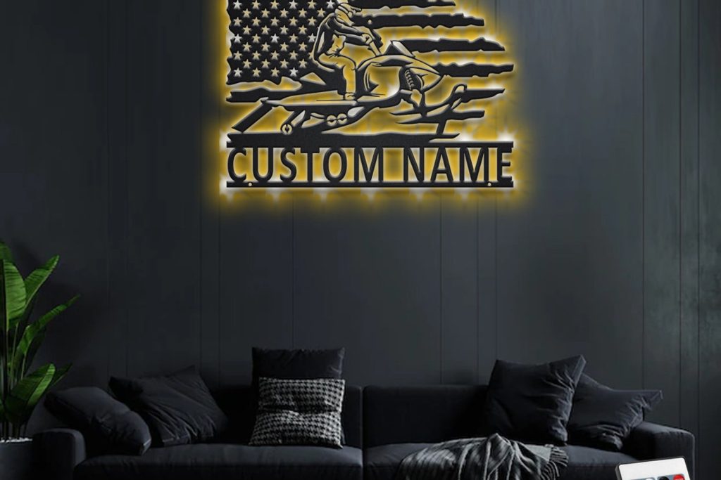 Custom US Snowmobile Metal Sign with LED – Rider Decor