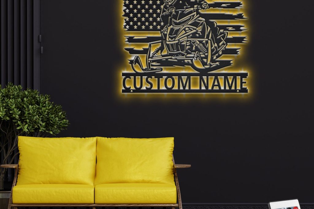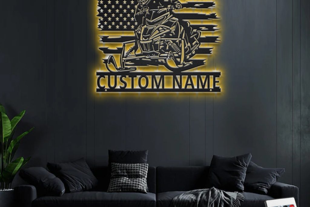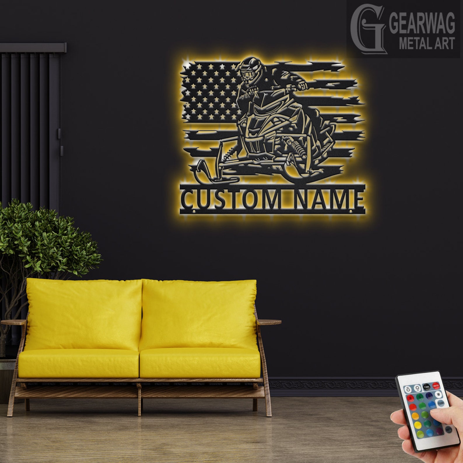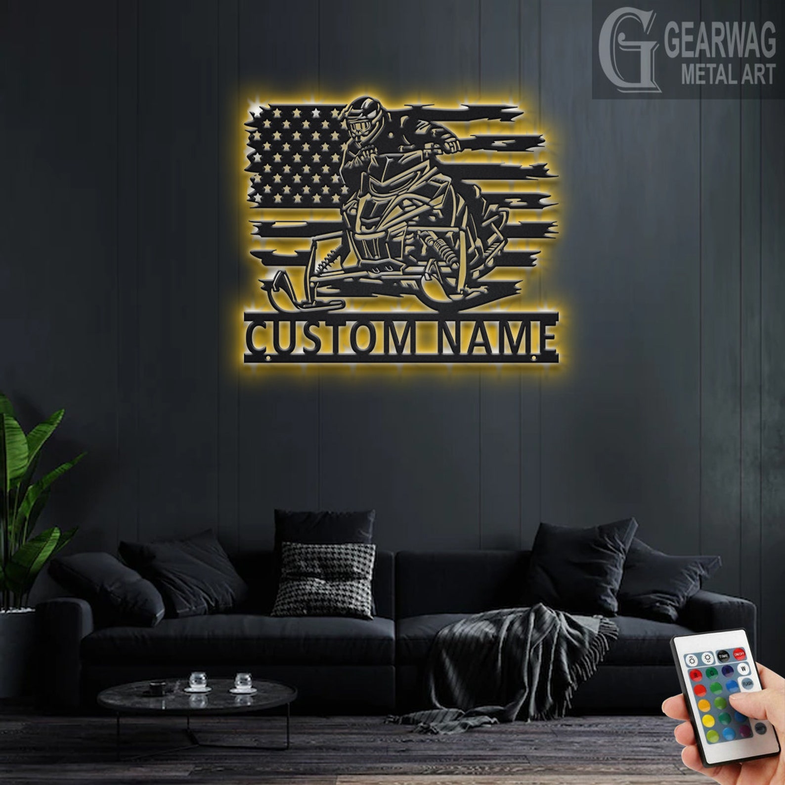 Custom US Snowmobile Metal Sign with LED – Rider Name