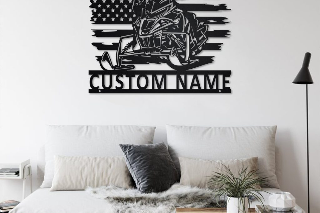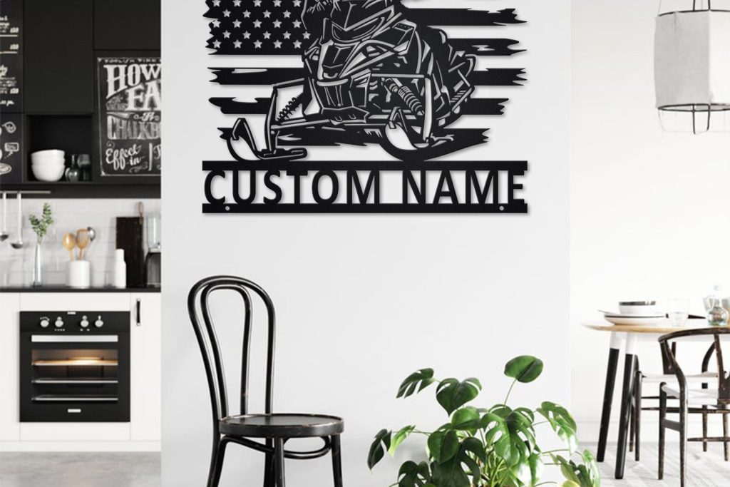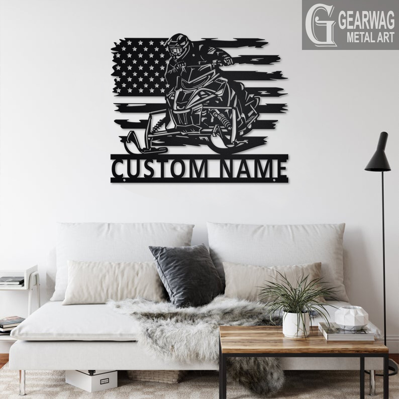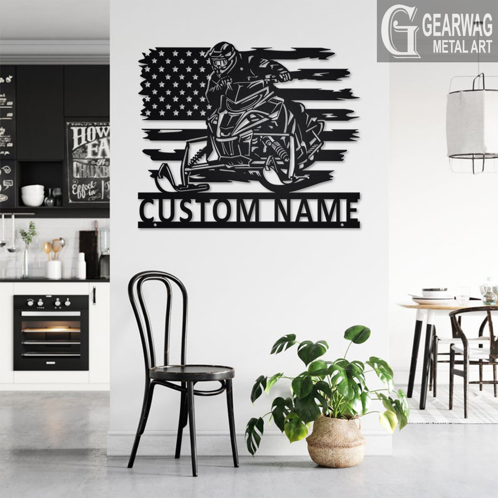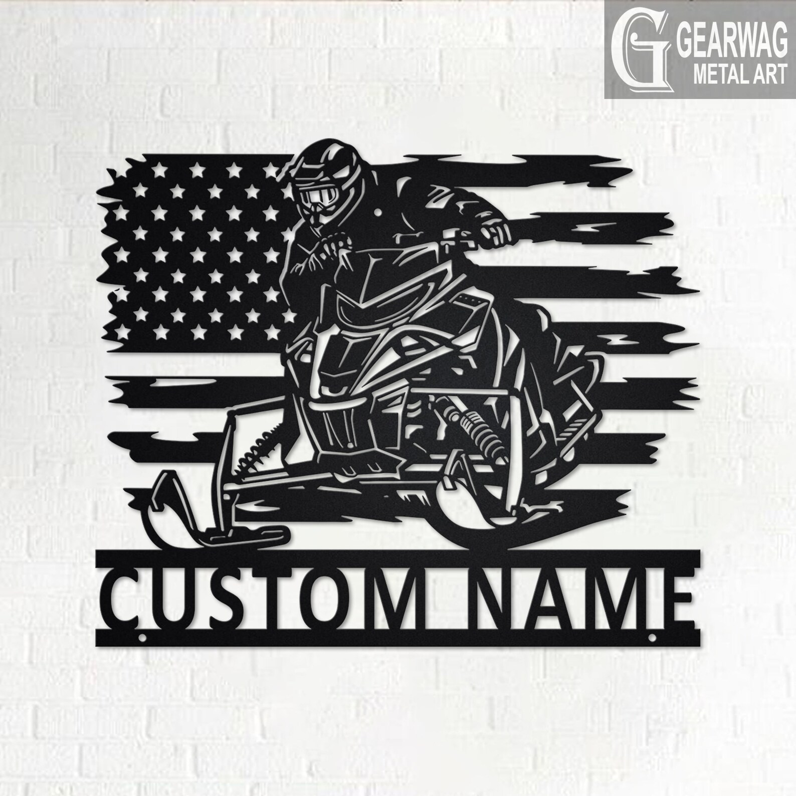 Custom US Snowmobile Metal Sign with LED – Rider Name