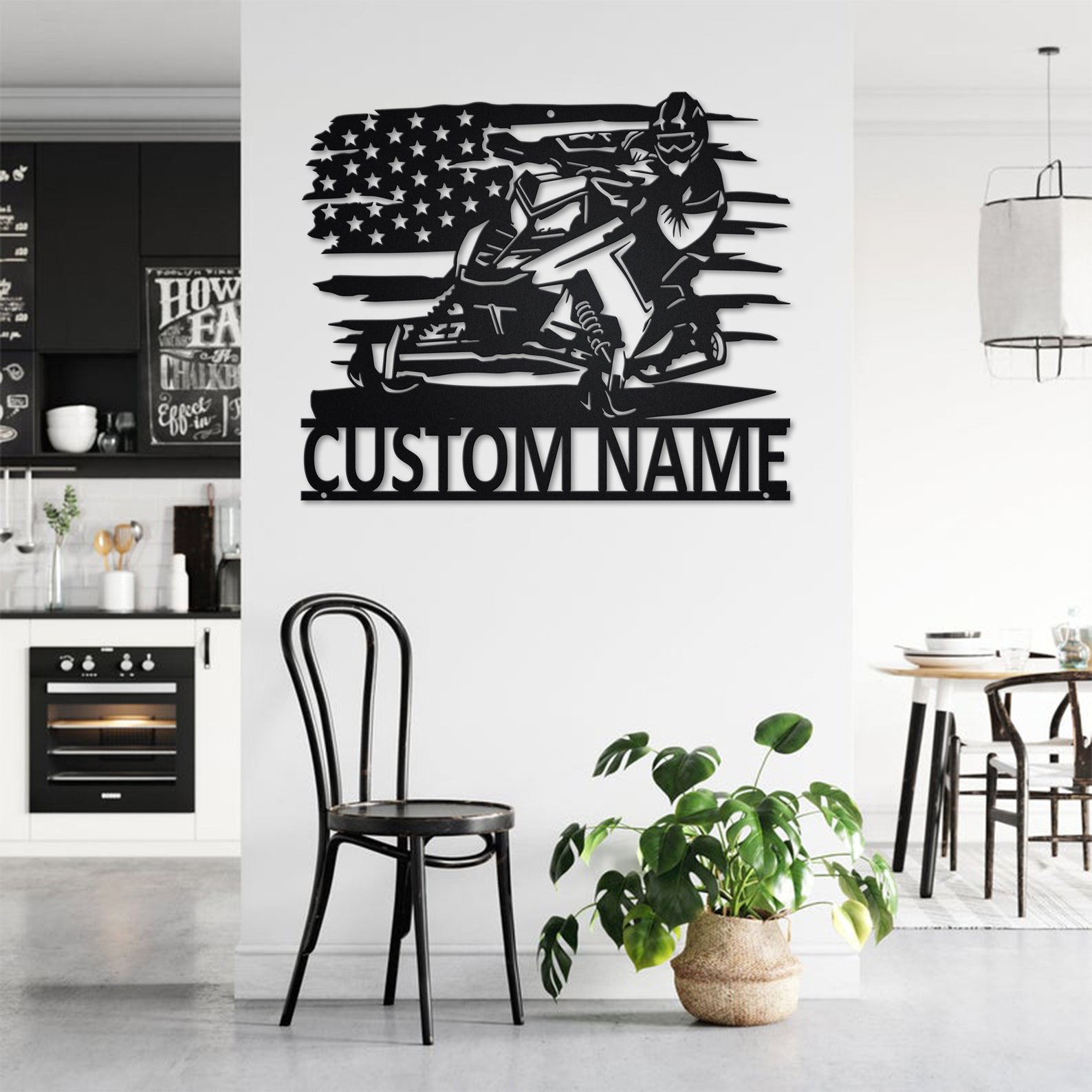 Custom US Snowmobile Rider Metal Sign with LED – Room Decor