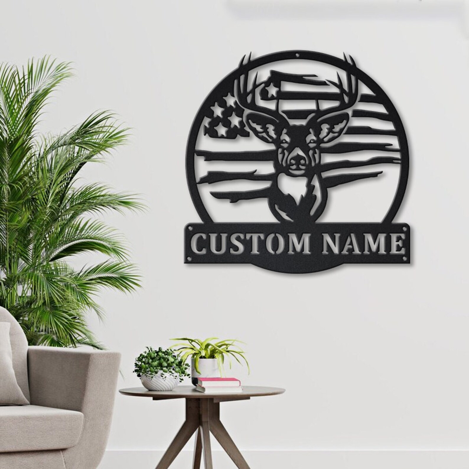 Be the first to review “Custom USA Flag Deer Hunting Sign – Personalized Deer Decor”