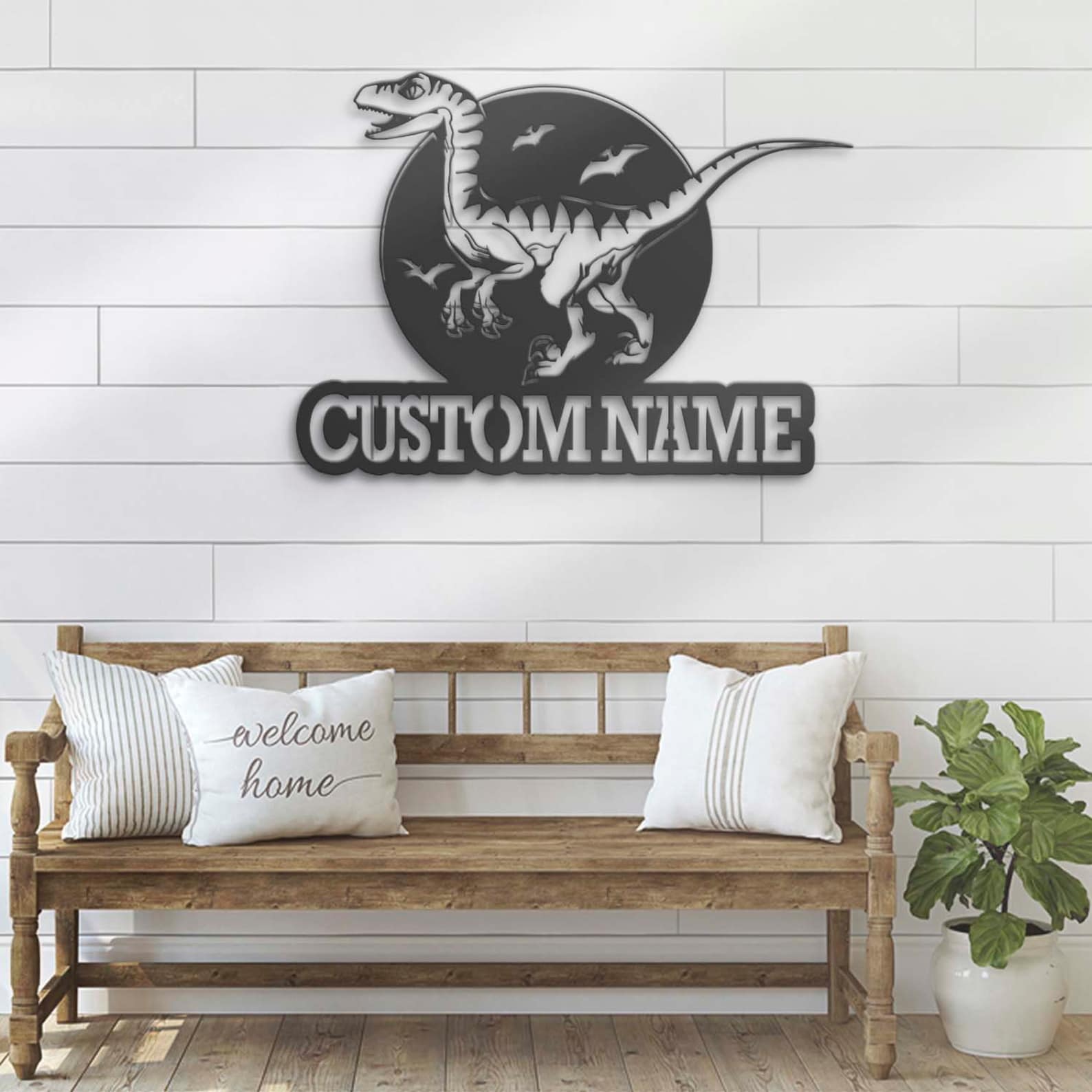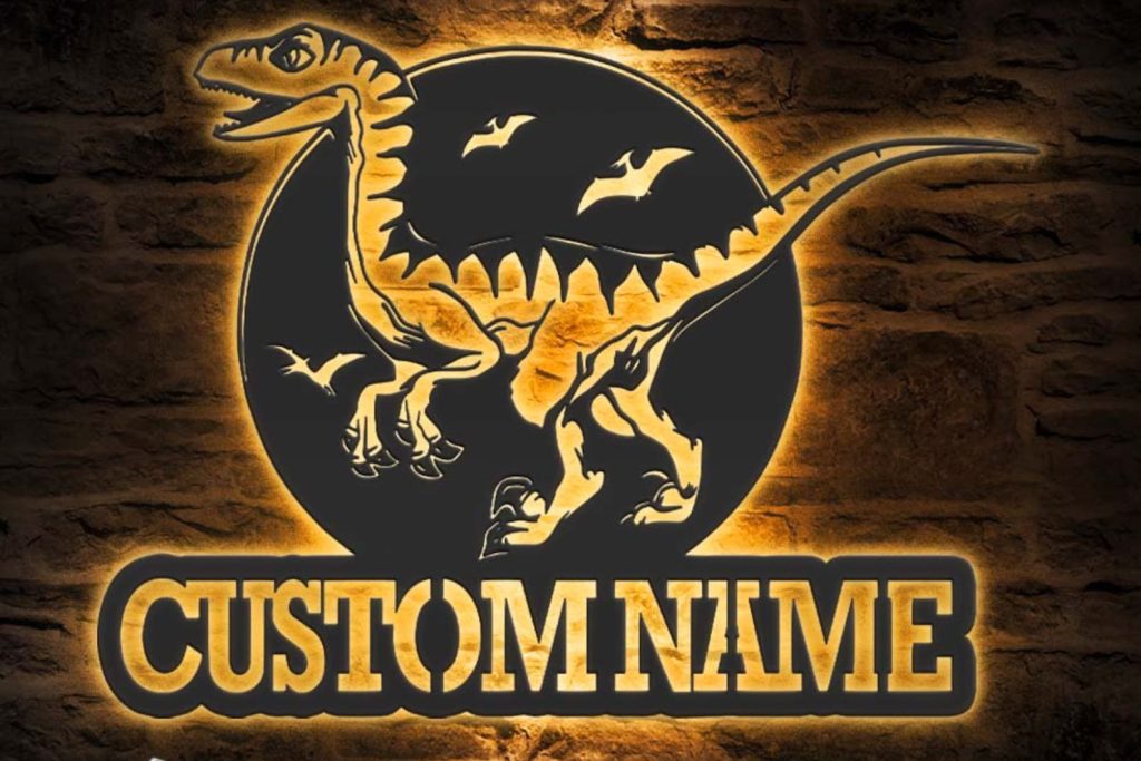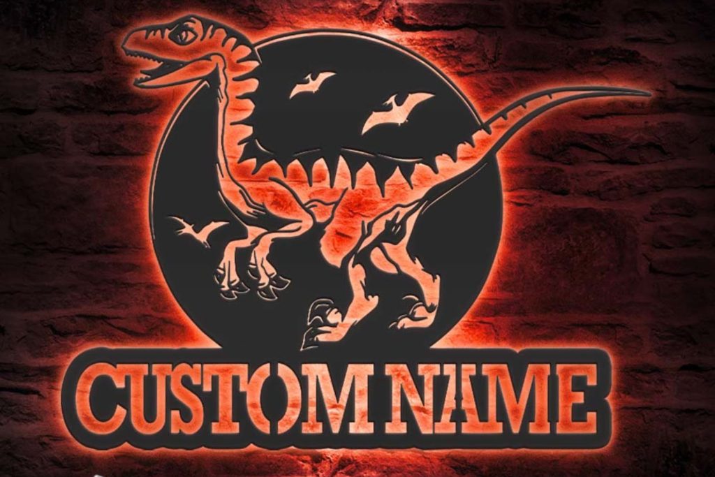 Be the first to review “Custom Velociraptor LED Metal Art – Dino Name Sign”