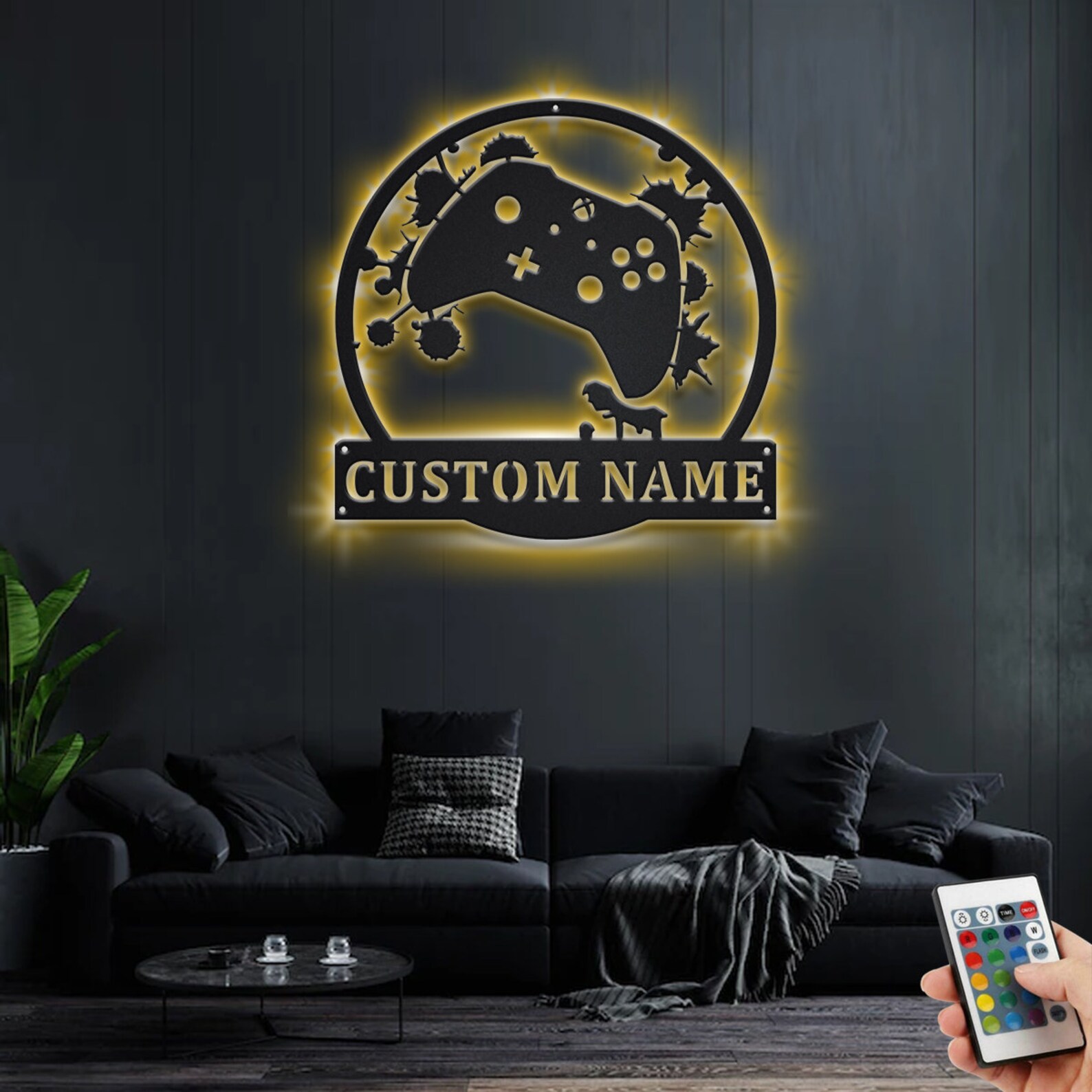 Custom Video Game Controller Metal Sign with LED – Room Decor