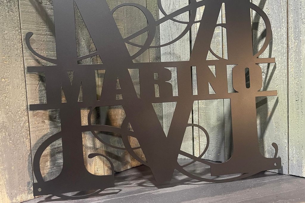 Be the first to review “Custom Vine Swirl Metal Sign – Fancy Monogram Decor”