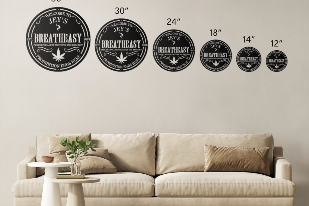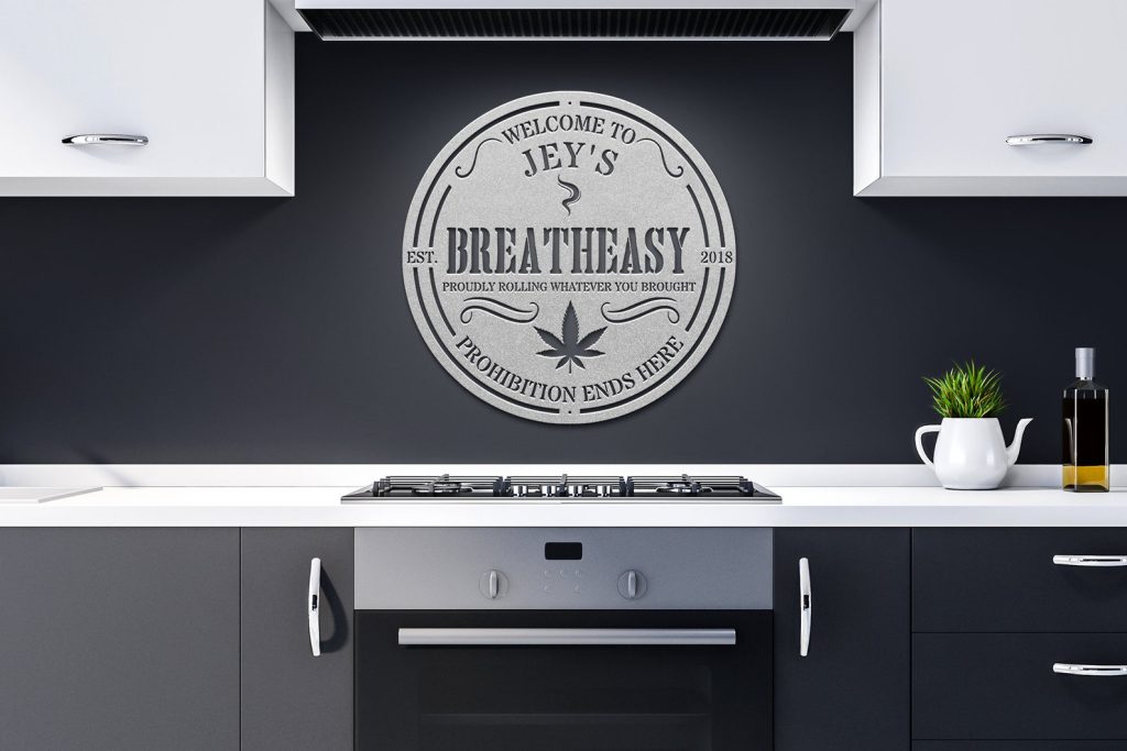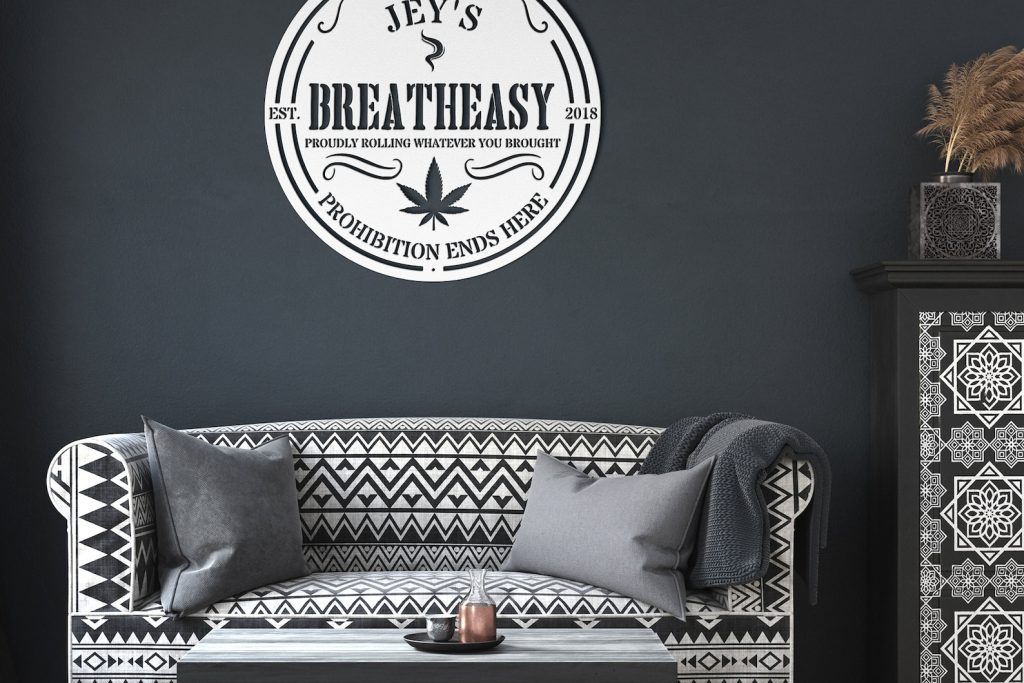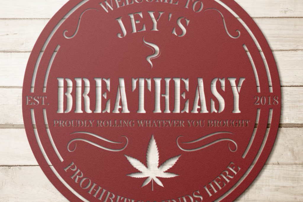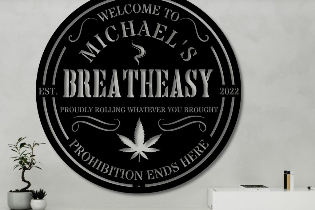 Create a secret haven for cannabis enthusiasts with this personalized "Breatheasy" cannabis-themed speakeasy sign. Crafted with intricate details and a touch of mystique, this metal sign captures the essence of the Prohibition-era speakeasies, infusing it with a modern cannabis twist. Personalize it with your name or desired message to make it uniquely yours. Hang it discreetly in your designated cannabis space or hangout, inviting like-minded individuals to unwind and indulge in a rela and welcoming atmosphere. The combination of vintage-inspired design elements and cannabis motifs adds a playful yet sophisticated touch to any room. Whether you9;re hosting intimate gatherings or seeking a private sanctuary to enjoy your favorite herb, this personalized cannabis-themed speakeasy sign sets the stage for elevated experiences and a sense of camaraderie among fellow cannabis enthusiasts.