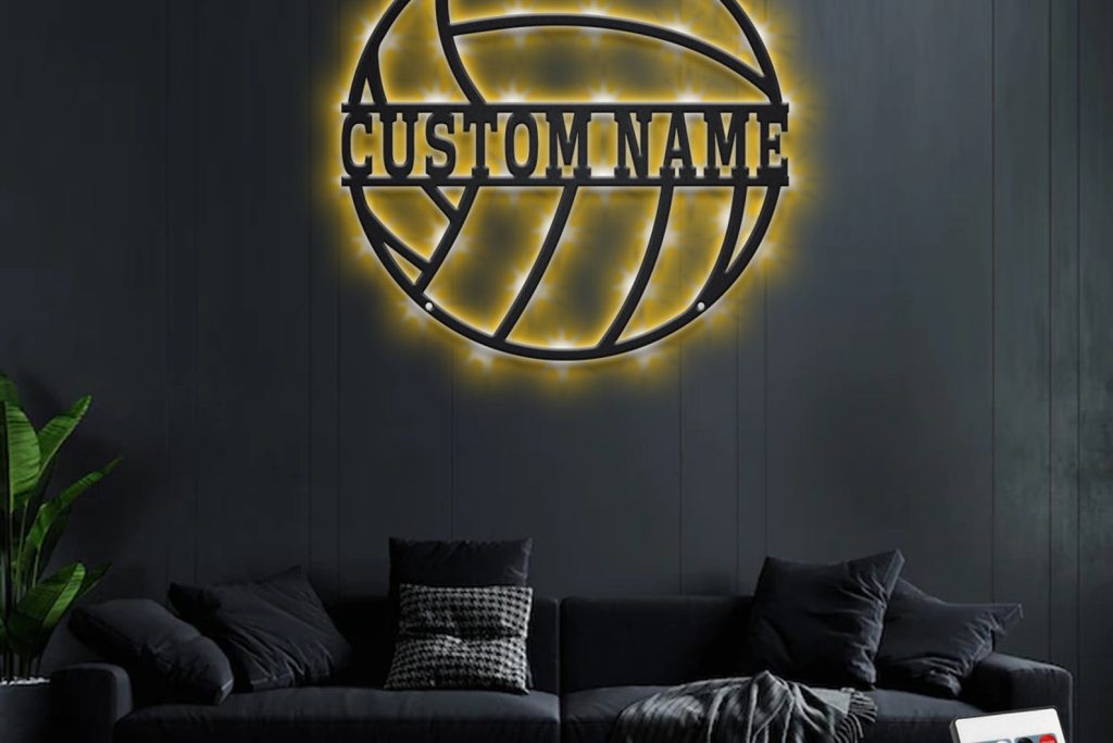 Custom Volleyball Metal Wall Art with LED & Player Name