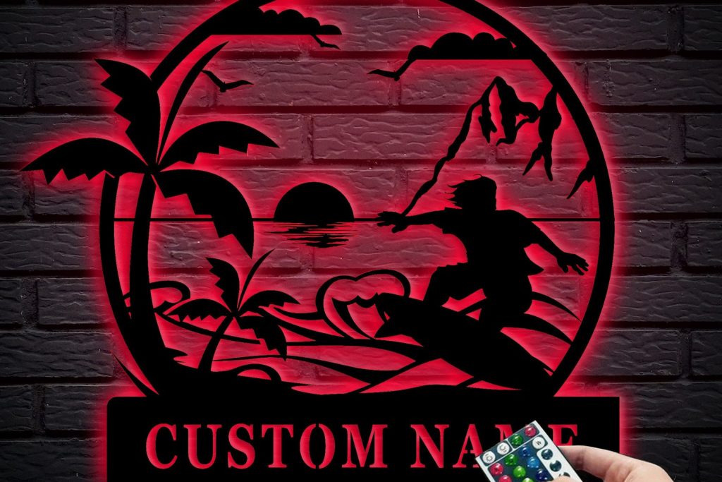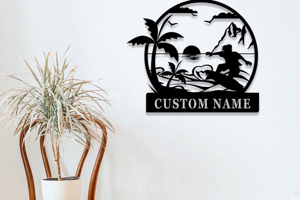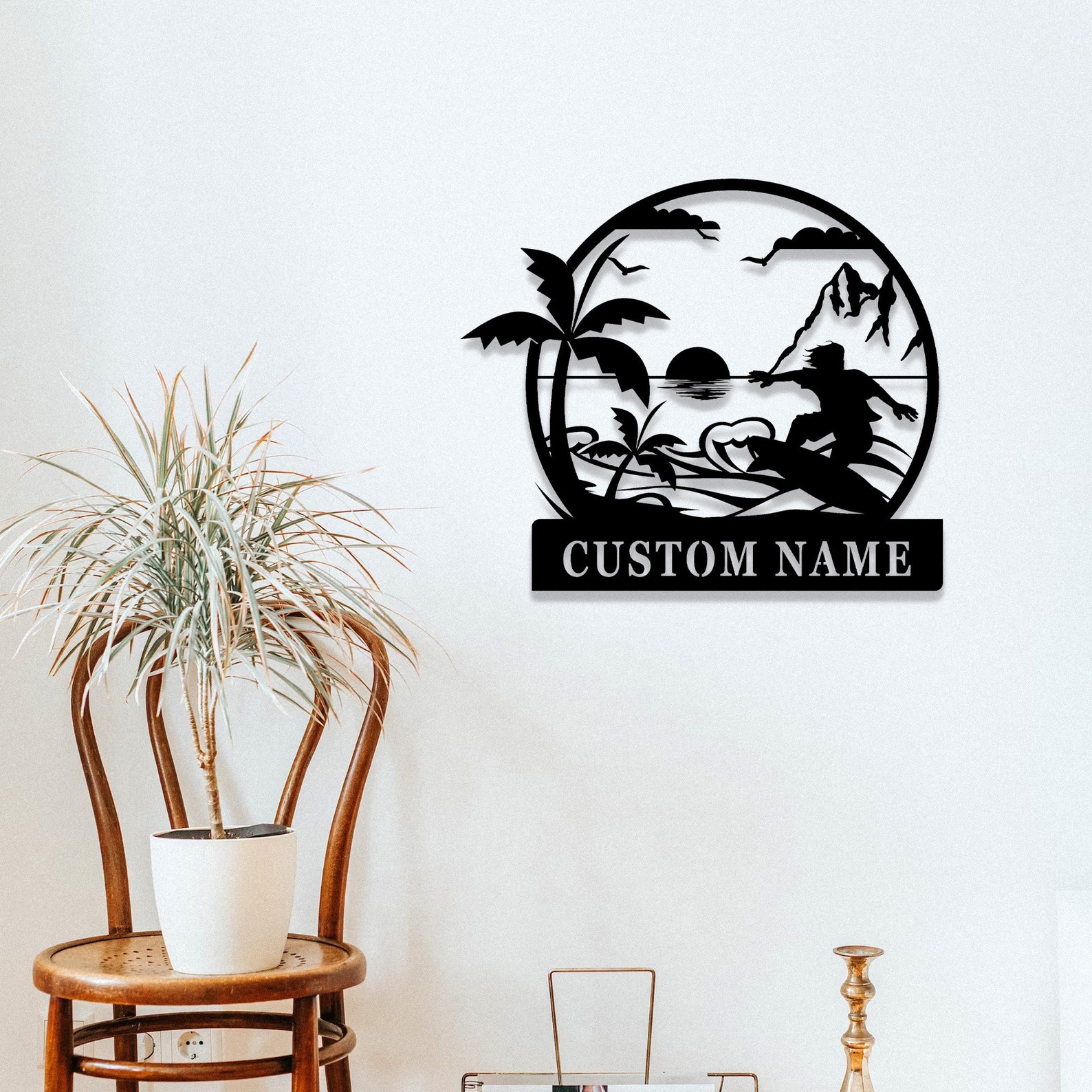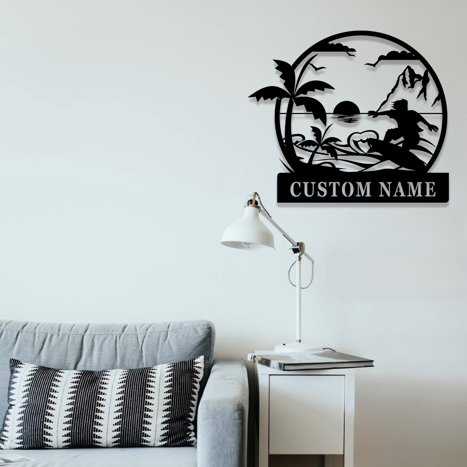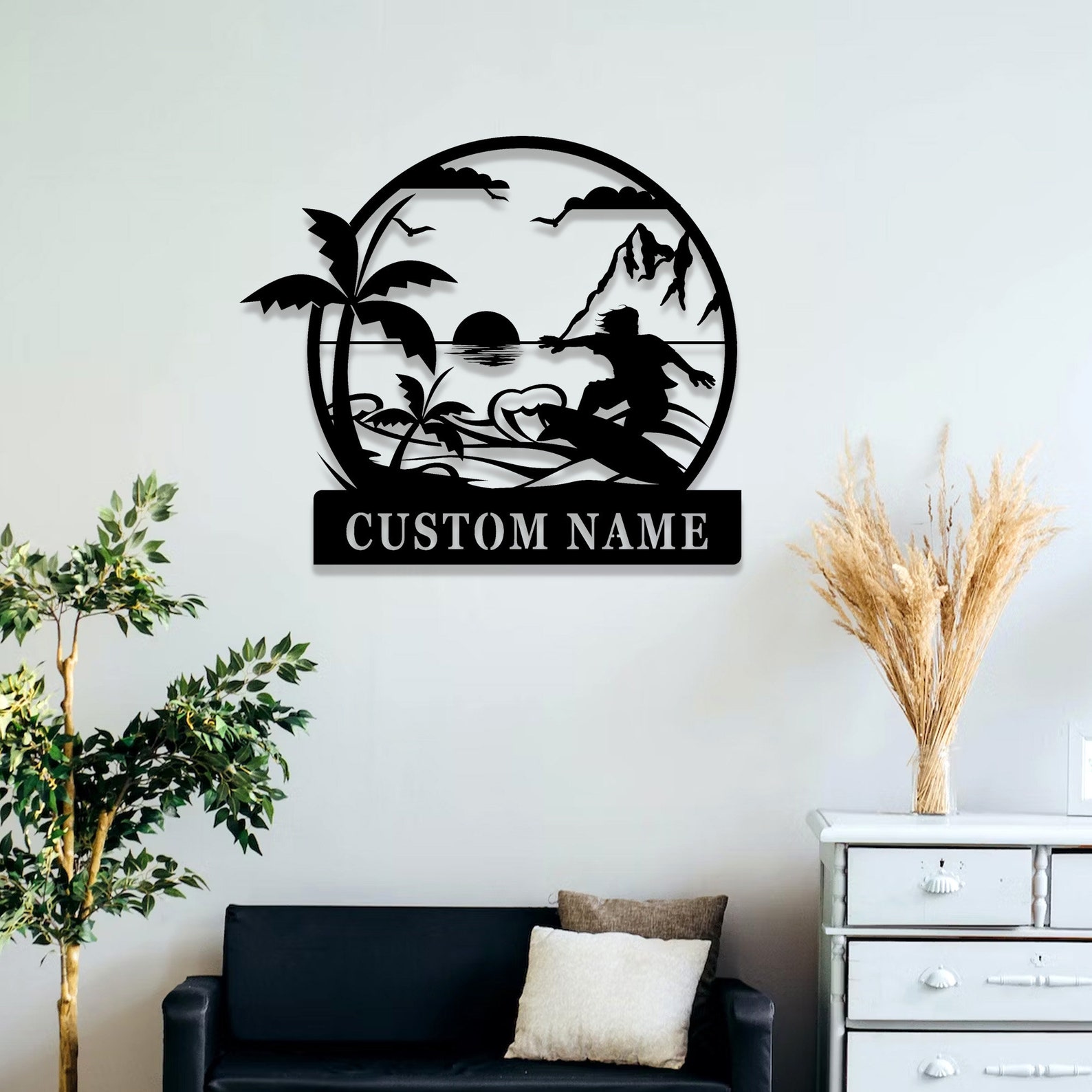 ***Custom Wave Surfing Metal Wall Art, Personalized Surfer Riding Wave Name Sign, Home Decor, Surfboard Decor, Birthday Gifts, 8-24inch***