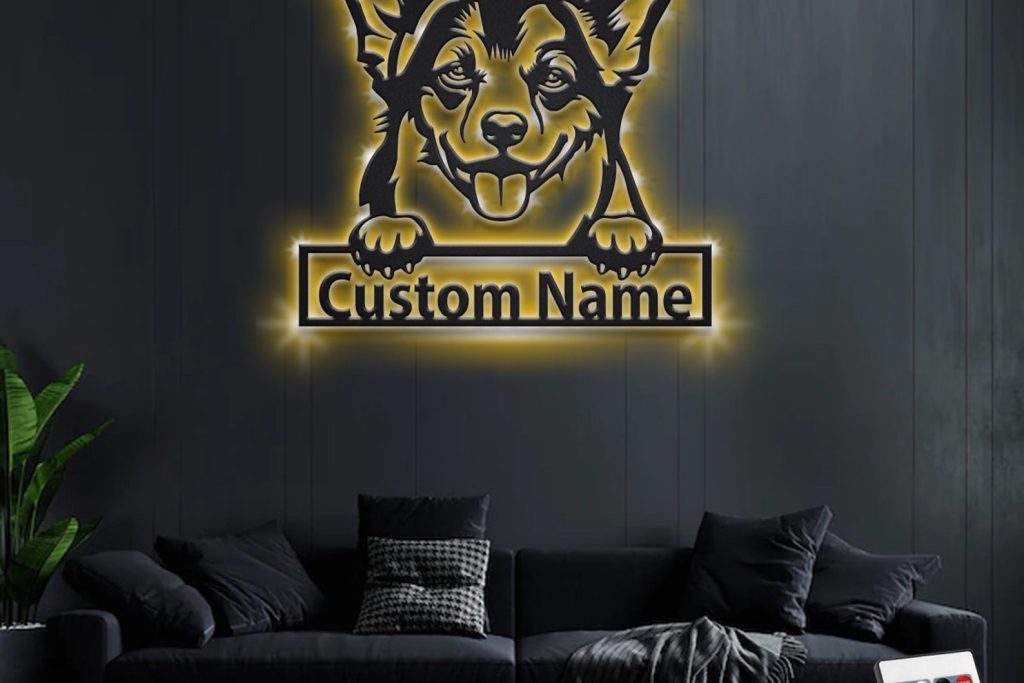 Custom Welsh Corgi Metal Sign with LED – Room Decoration