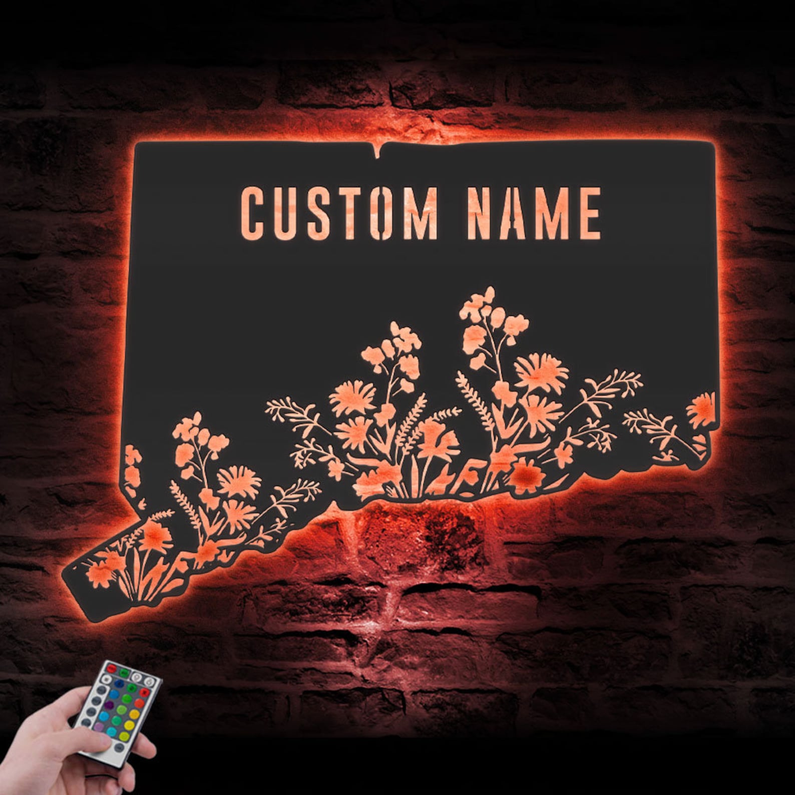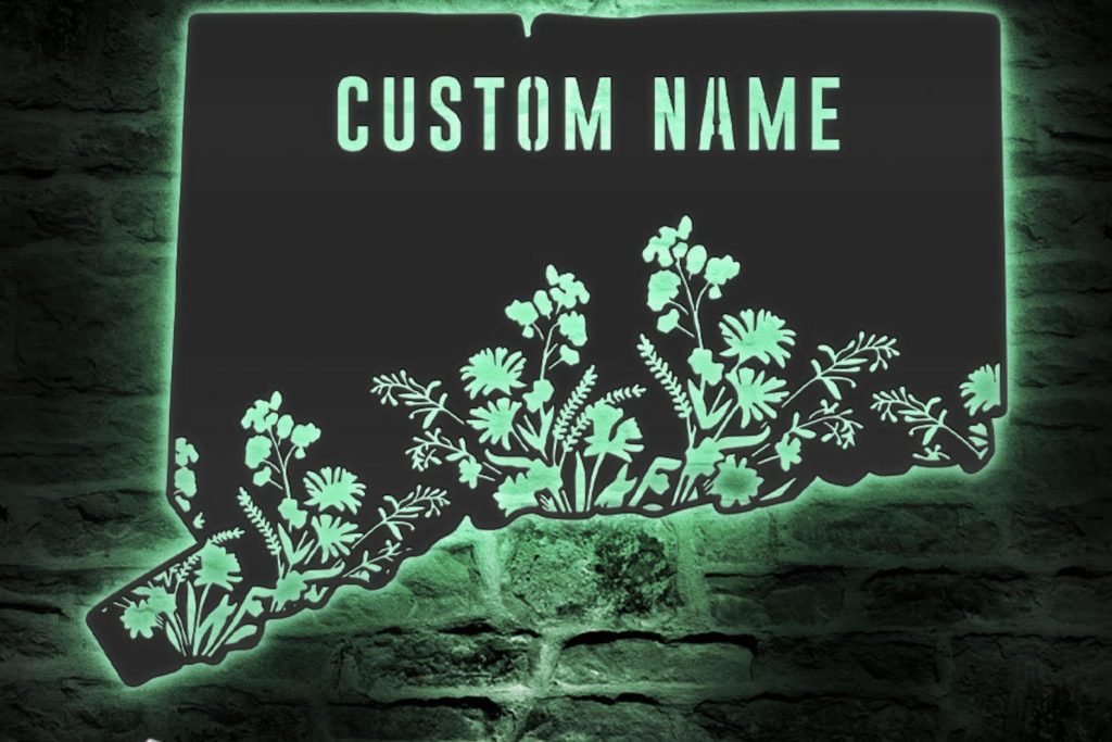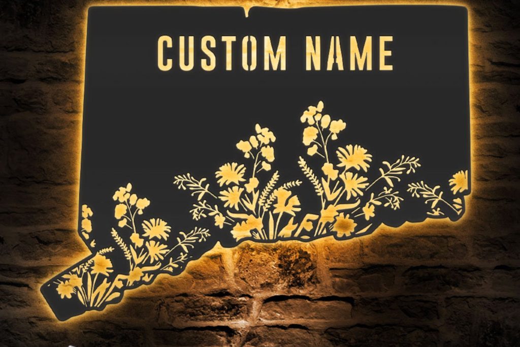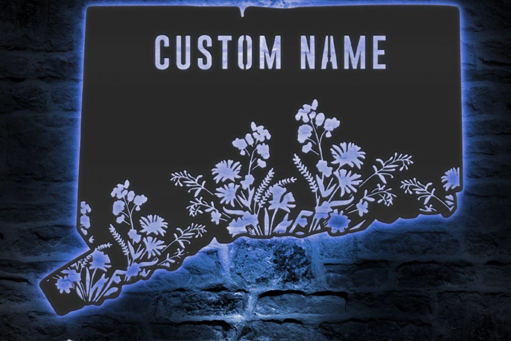 Be the first to review “Custom Wild Flower Connecticut Metal Wall Art with LED & Name”
