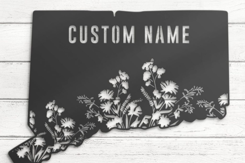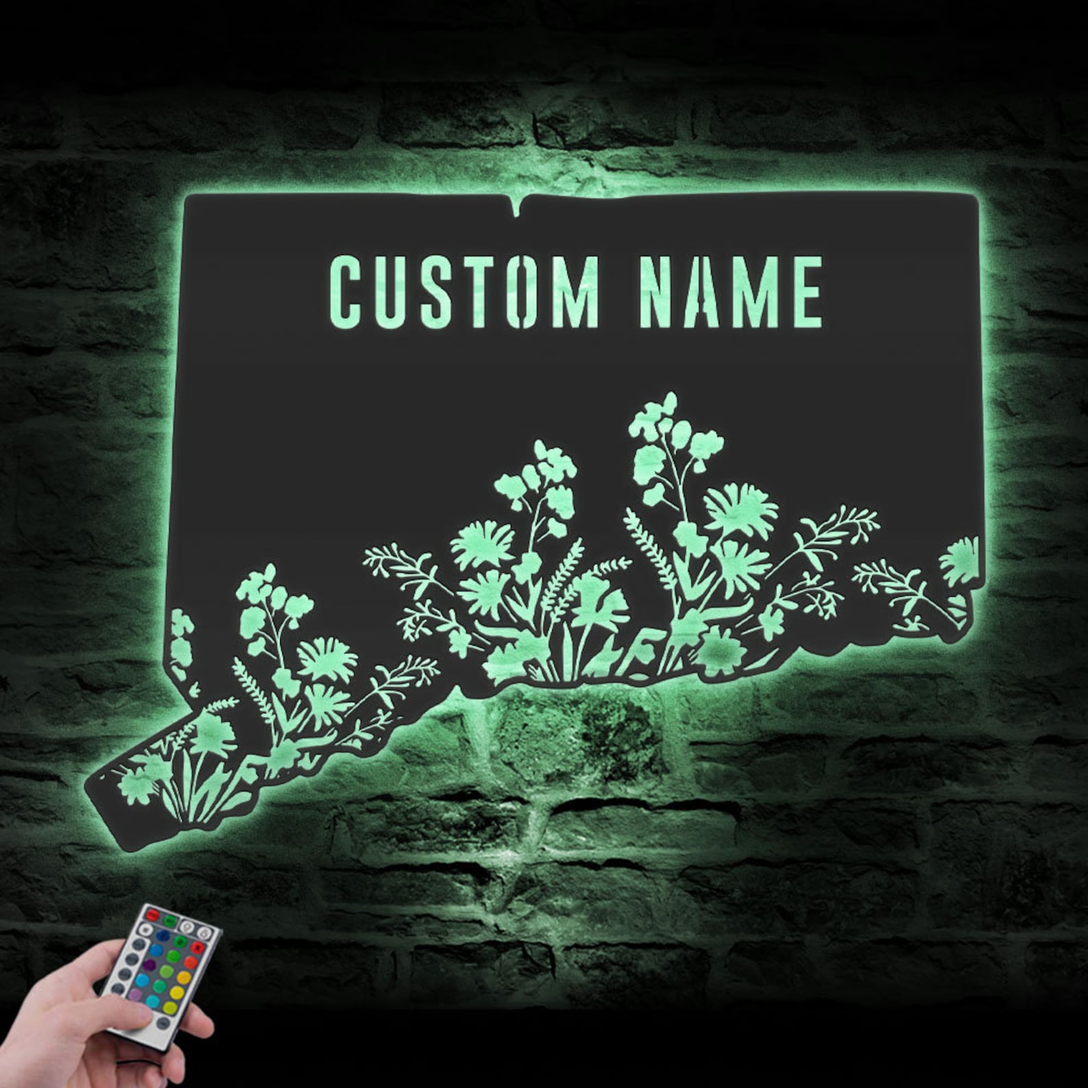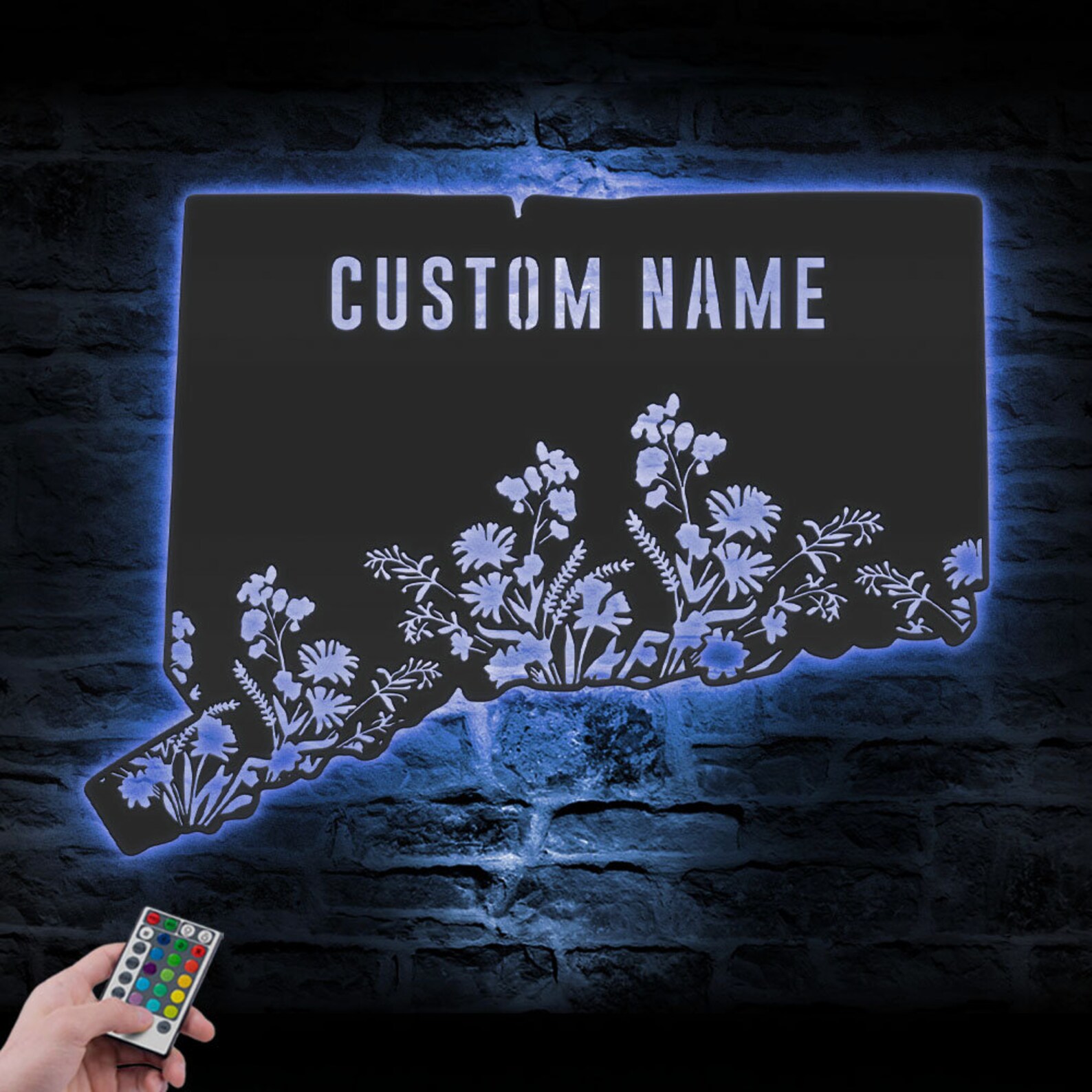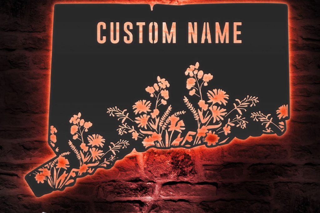 Be the first to review “Custom Wild Flower Connecticut Metal Wall Art with LED & Name”