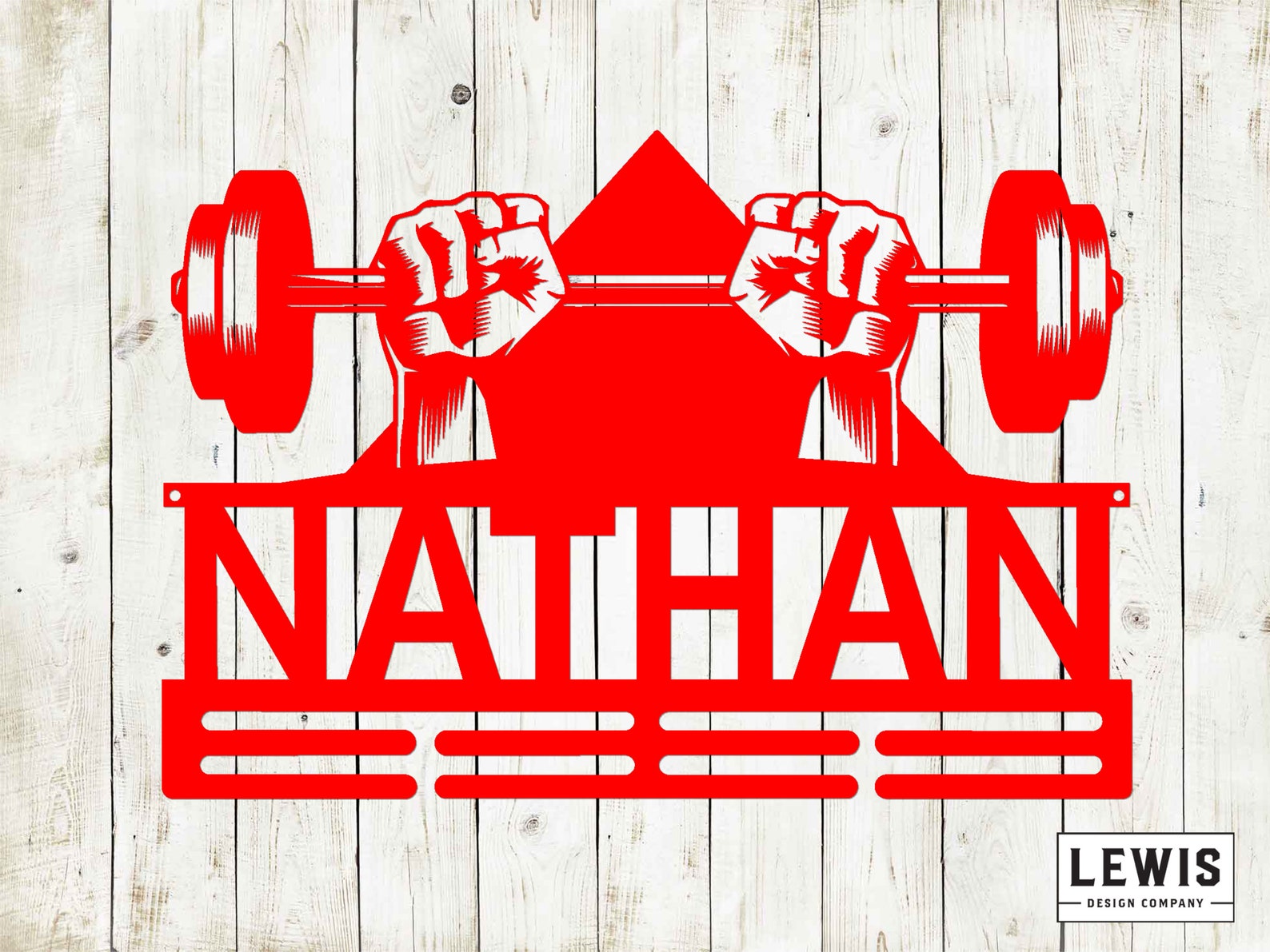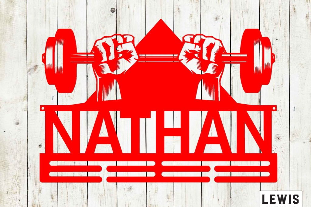 Bodybuilding, Weightlifting and Workout Medal hanger with Custom Monogram Name Metal Sign